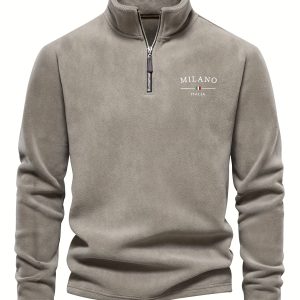 Fashion Embroidered Autumnu002FWinter New Men’s -Lined Stand Collar Zip-Up Sweatshirt, Long-Sleeved, 4u002F1 Ribbed Knit Pullover