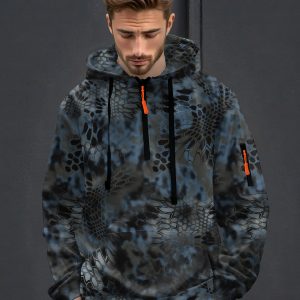 Men’S Snake Pattern Camouflage Zip-Up Hoodie, 10.23 oz Heavy Long-Sleeve Pullover with Pockets for Outdoor Sports.