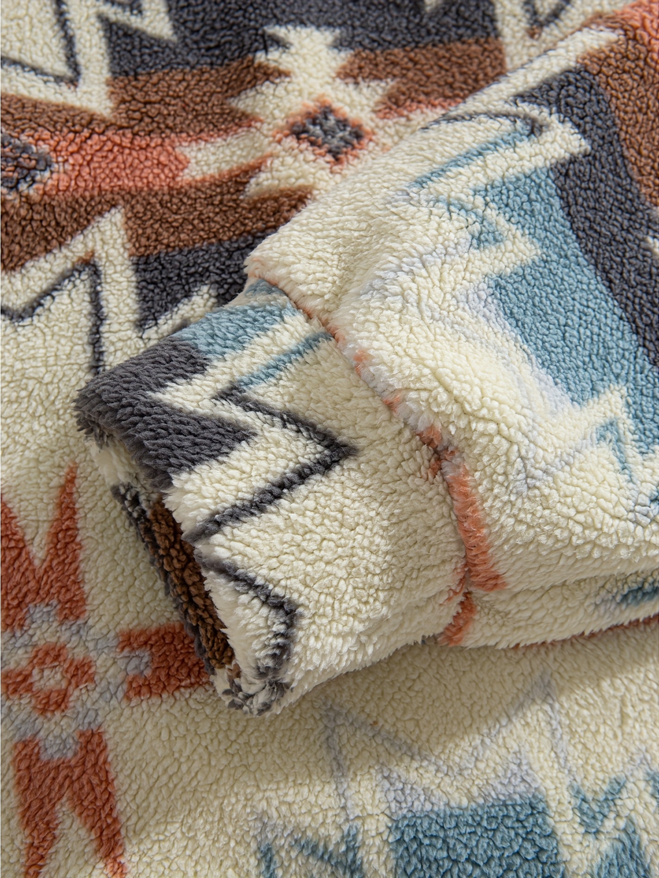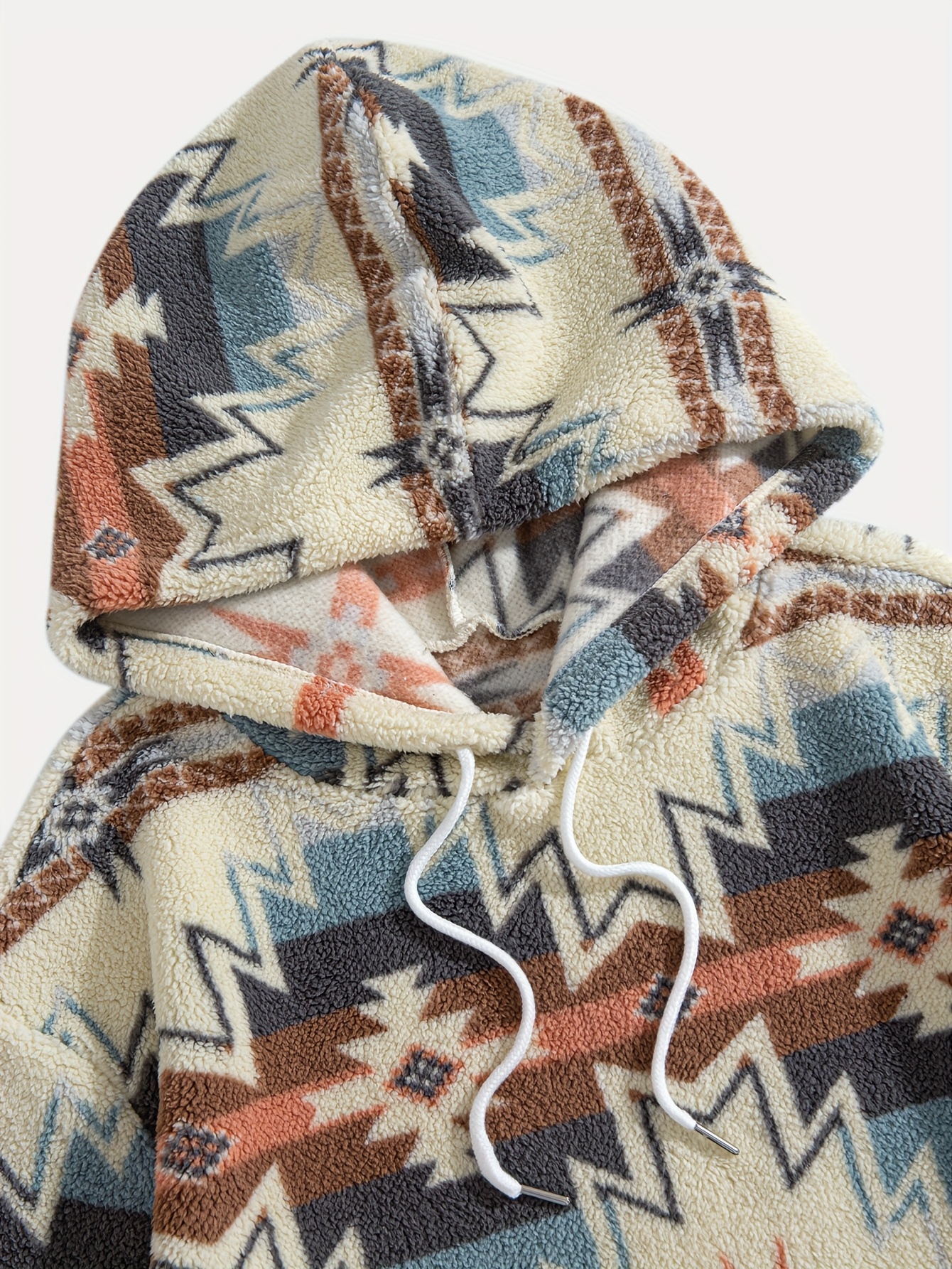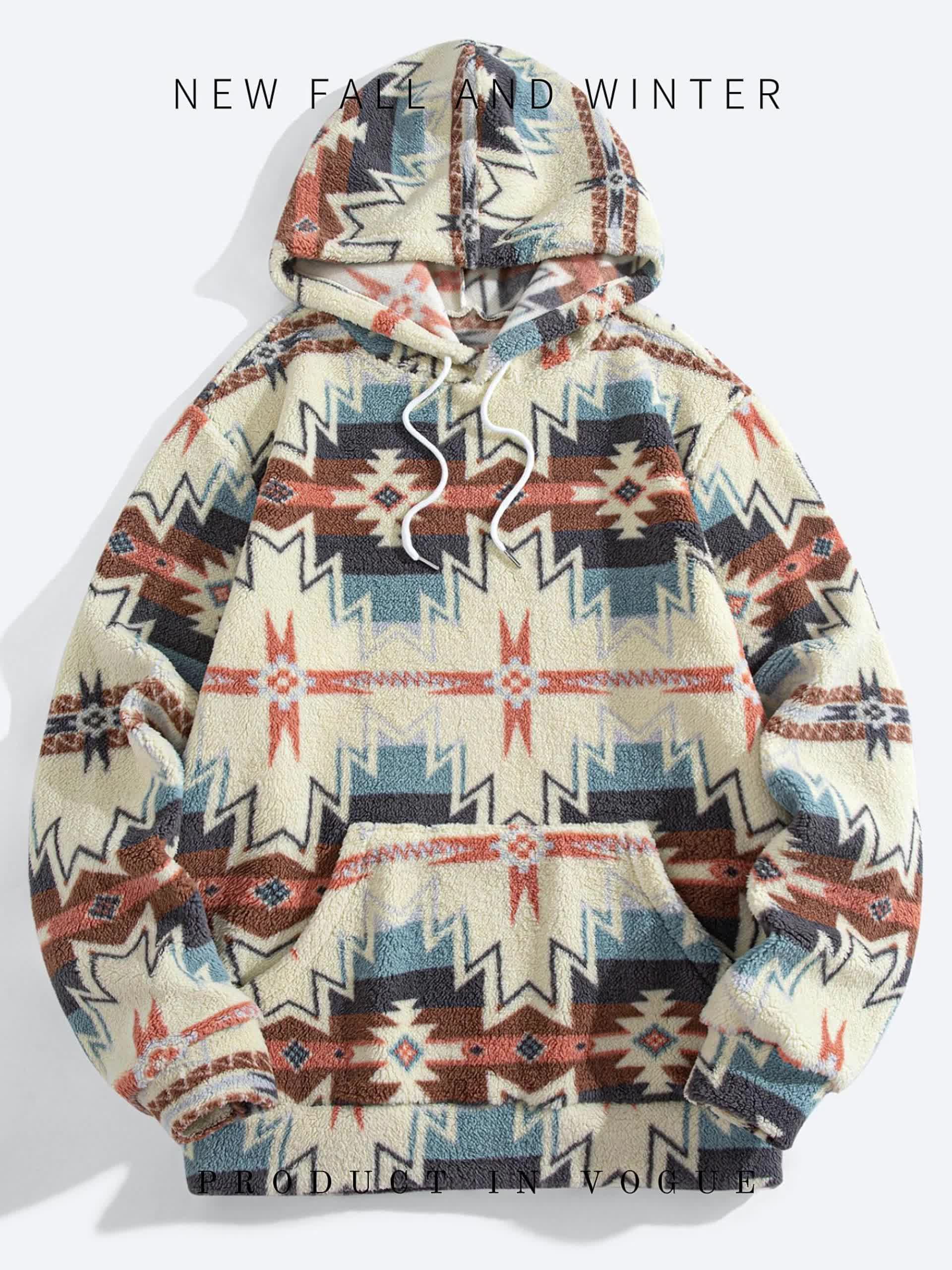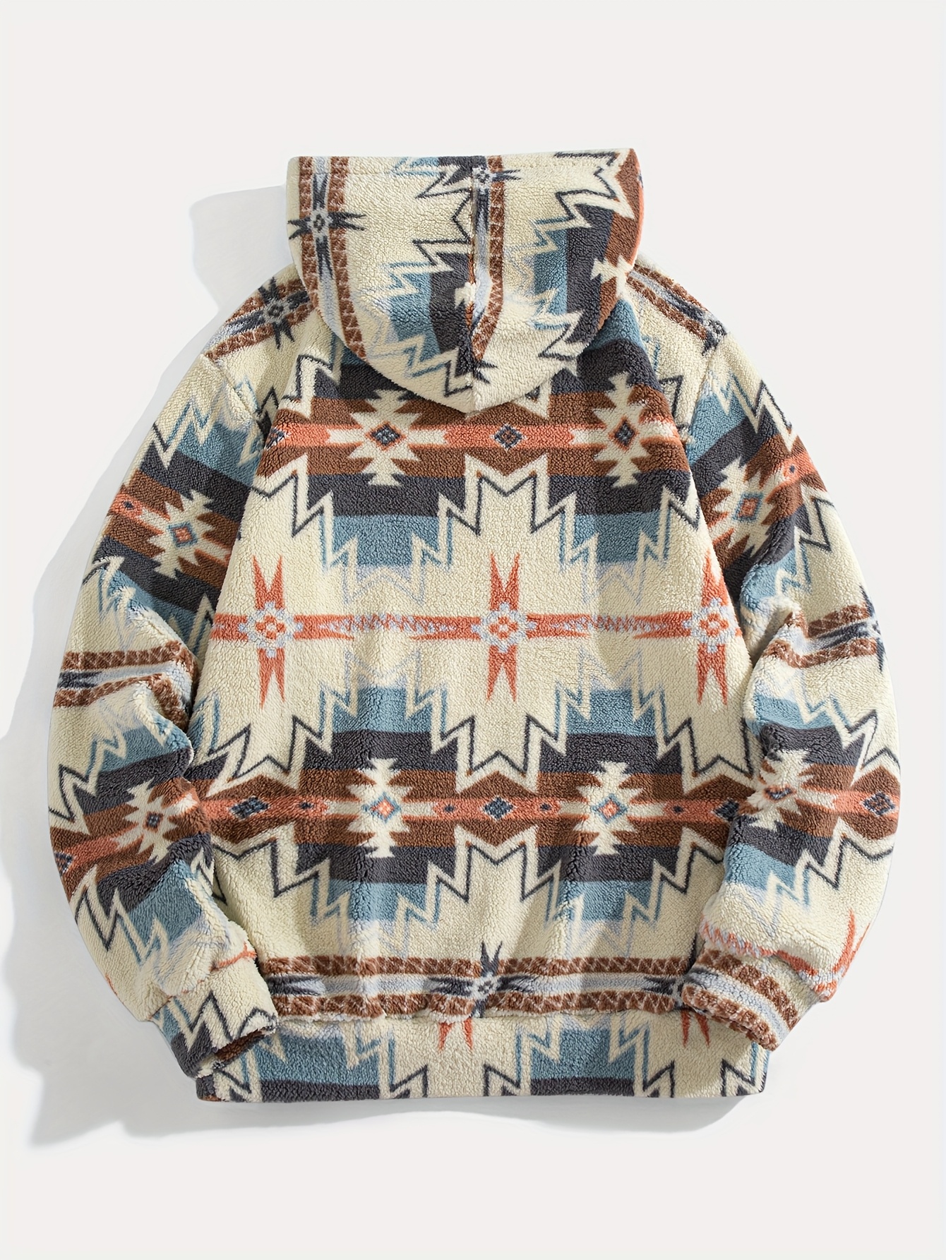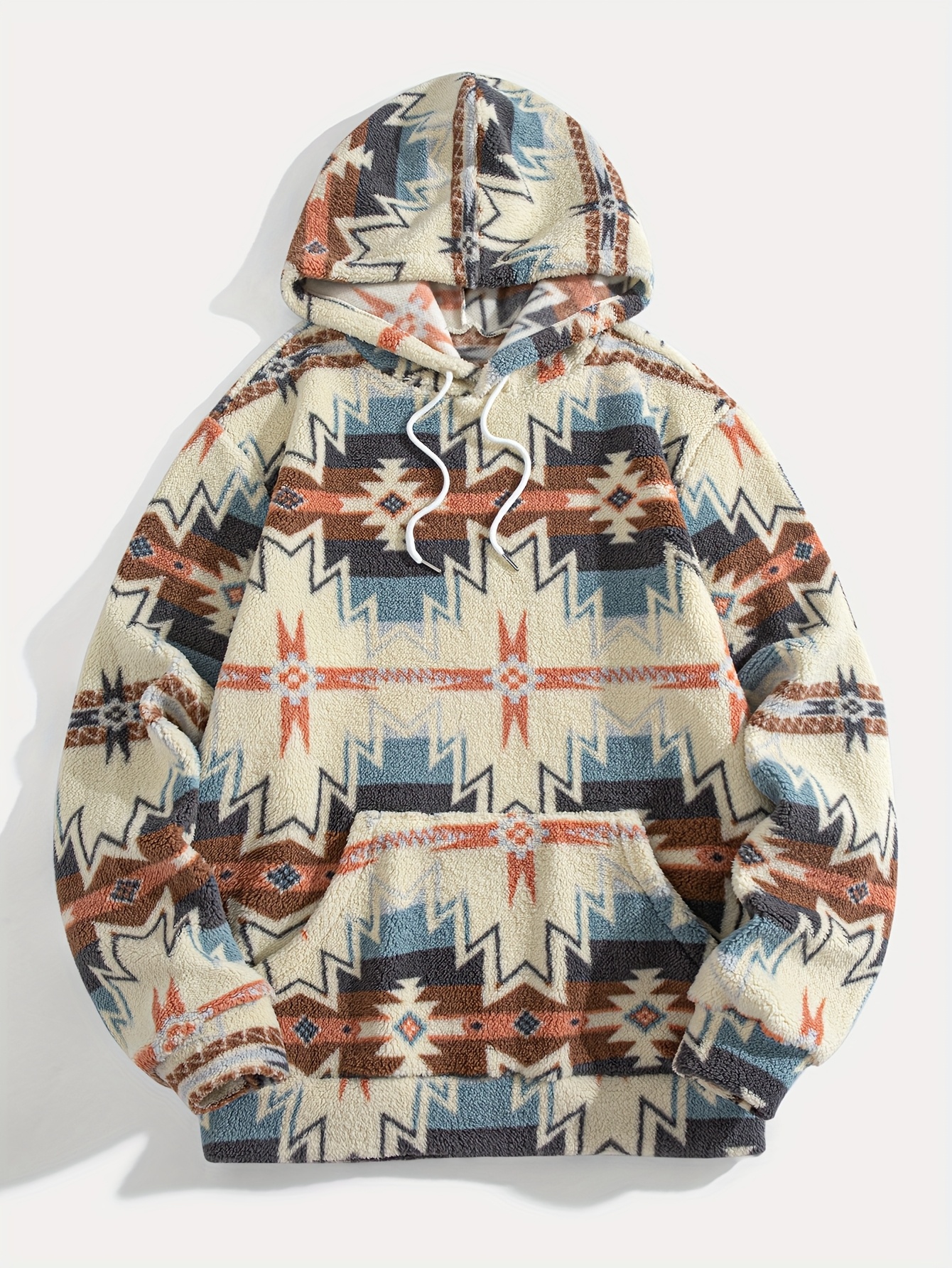 1pc of Double-Sided Plush Ethnic Style Print Hoodie, Casual Sports Sweatshirt. The Fabric Is Soft And Comfortable.