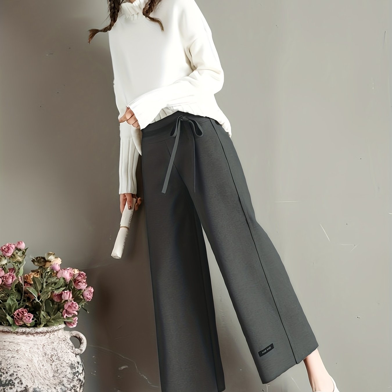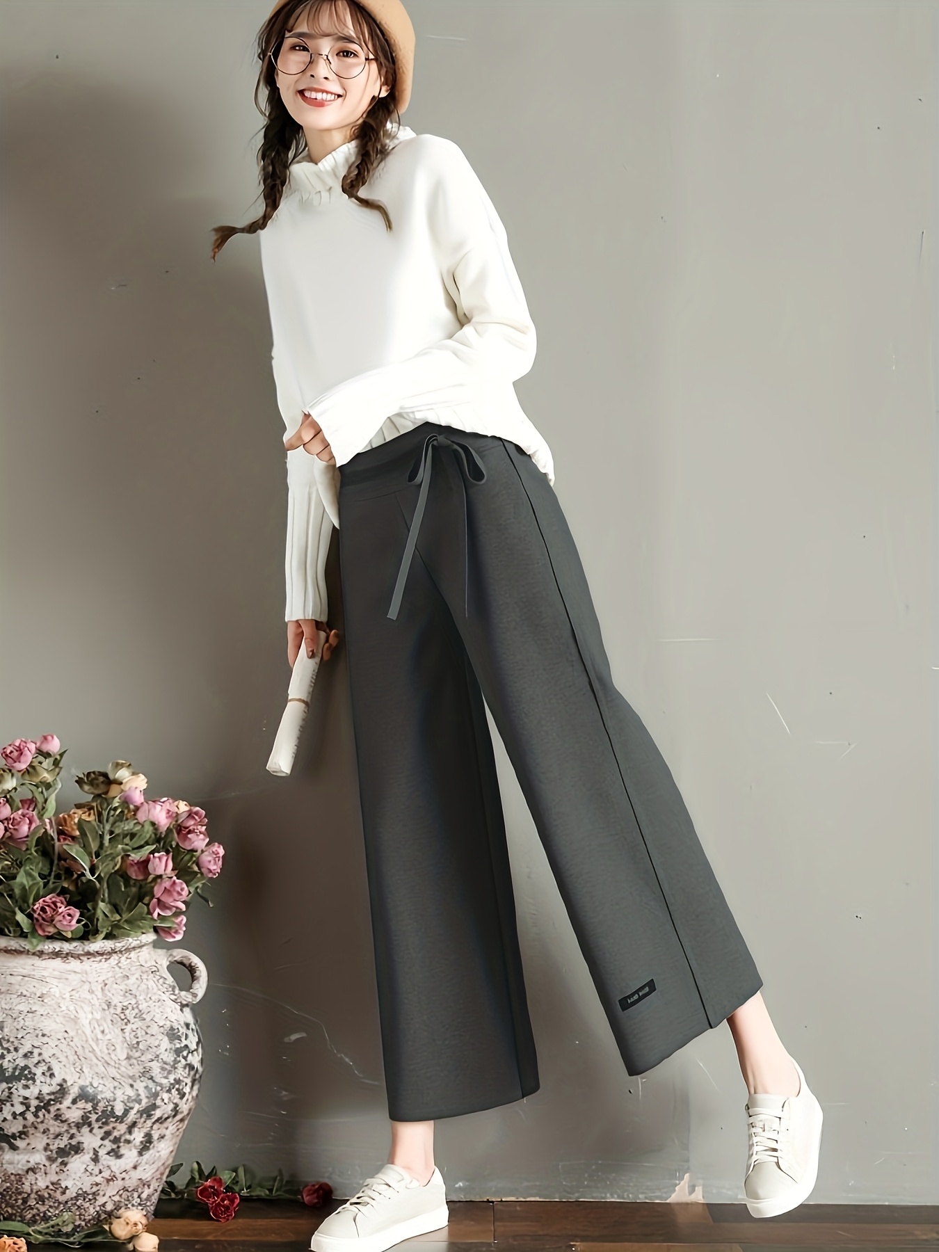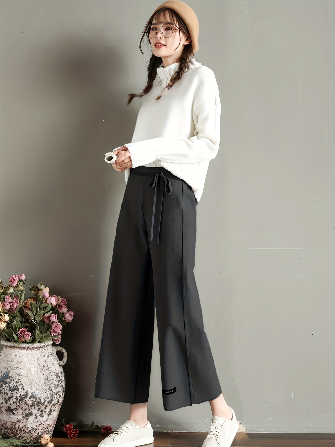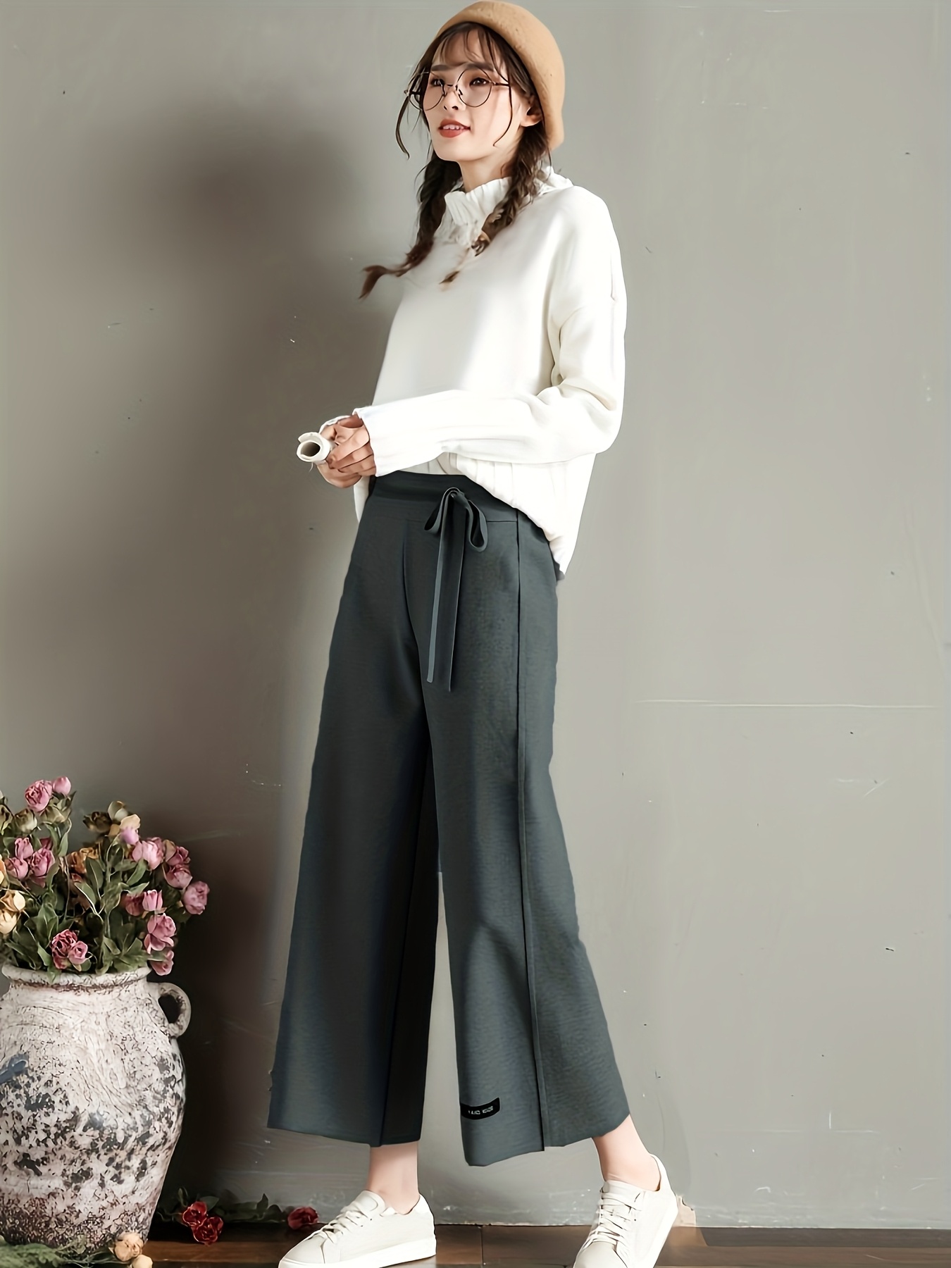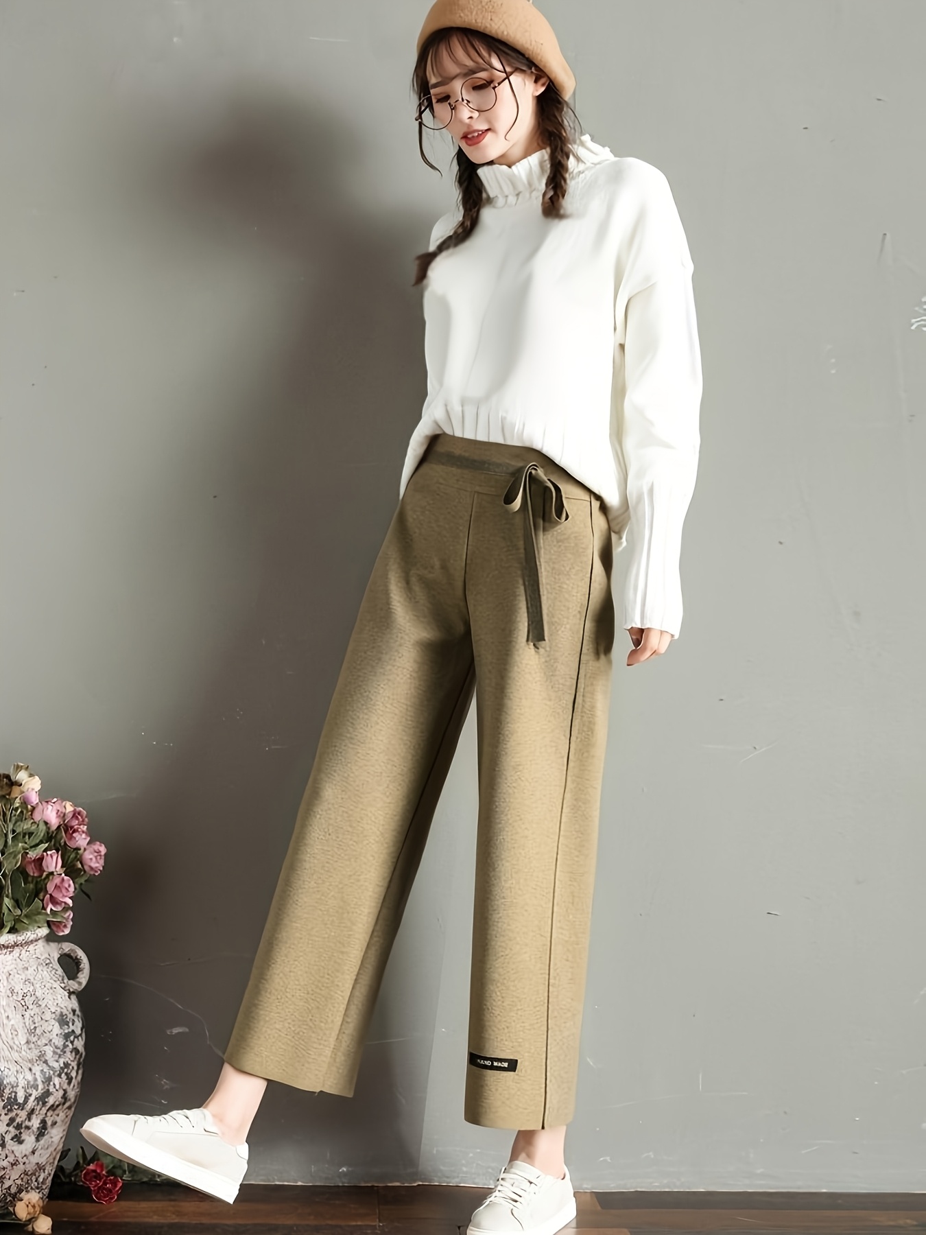 2025 New Autumn Winter Women’s Tweed Cropped Wide-Leg Pants