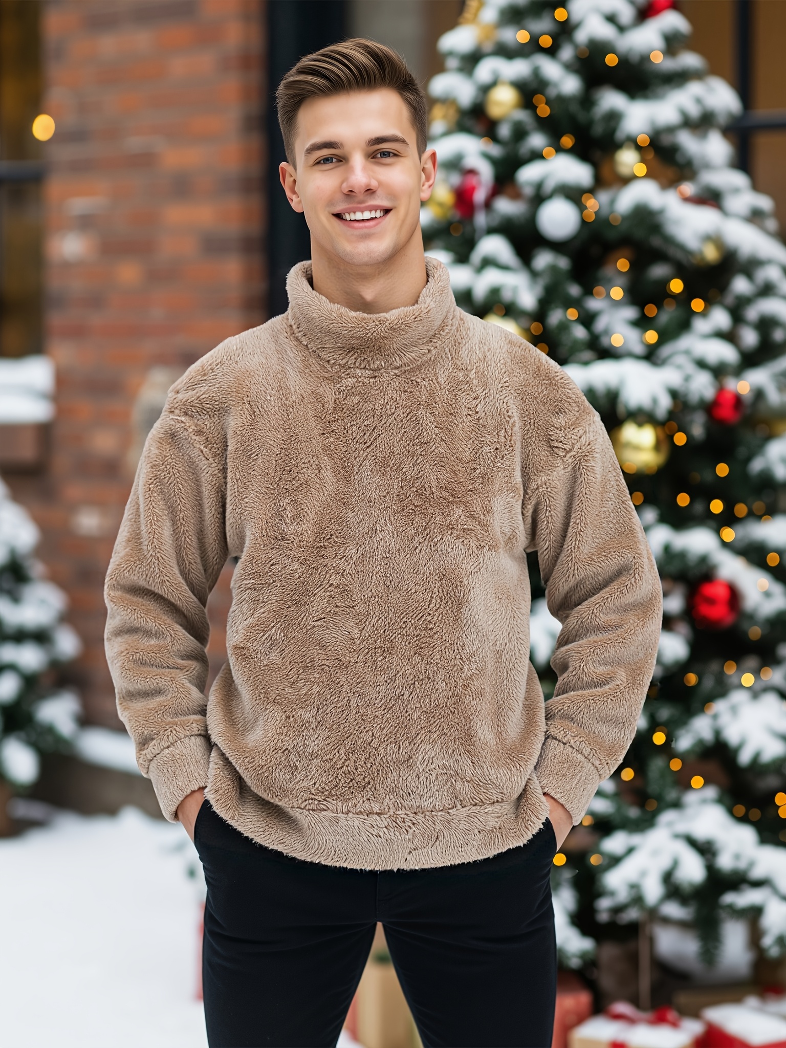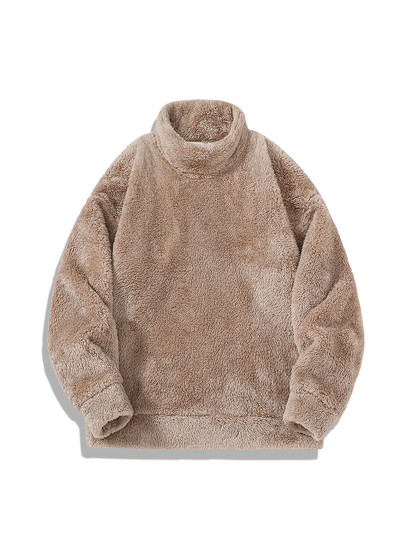 Autumn & Winter Turtleneck Top – Loose Comfortable Long-Sleeve Shirt, Warm Light Beige-Friendly Daily Outerwear, Versatile Commute Streetwear Basic Piece, Soft Texture Casual Top, Unisex