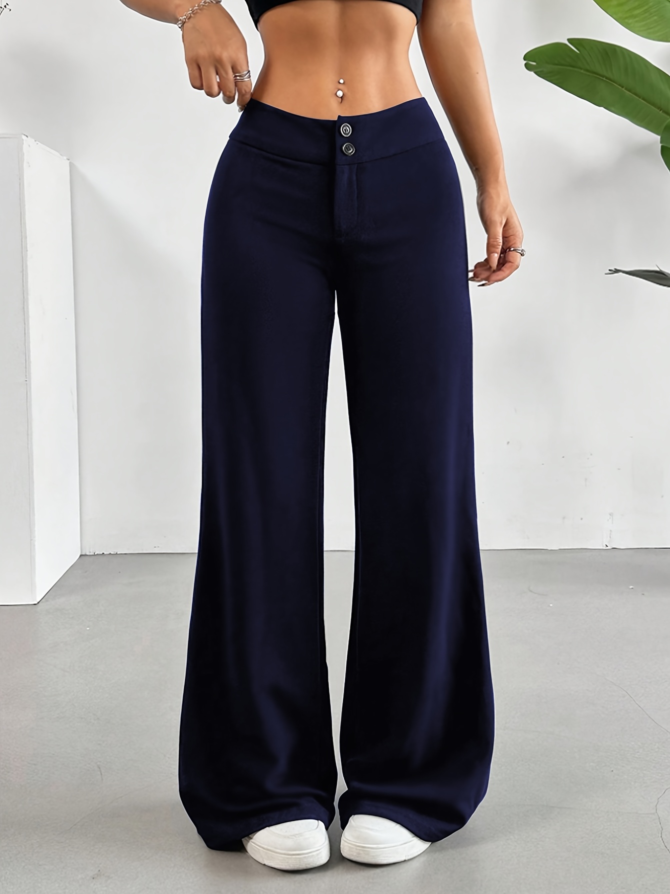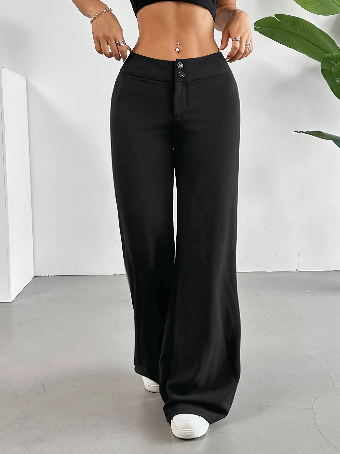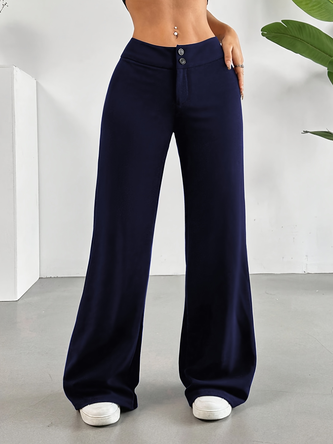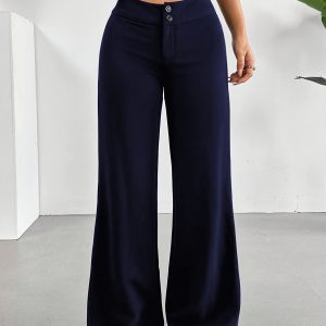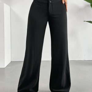- Casual High-Waist Straight Leg Pants | Comfortable Fit, Button Detail, Solid Color, Suitable for All Seasons