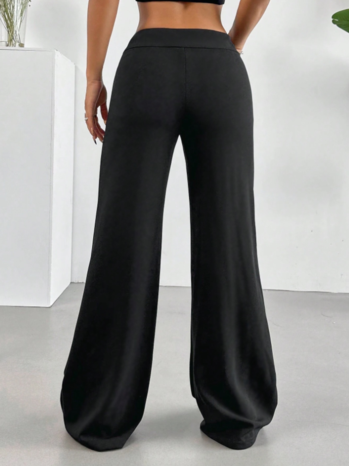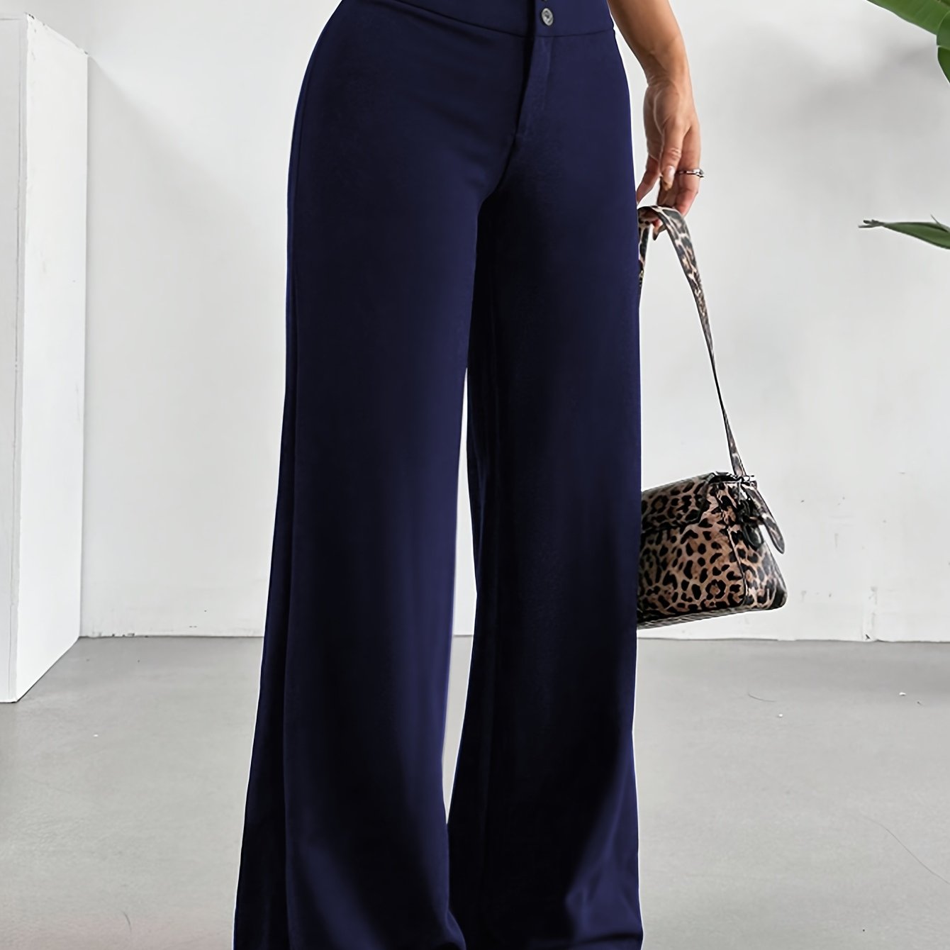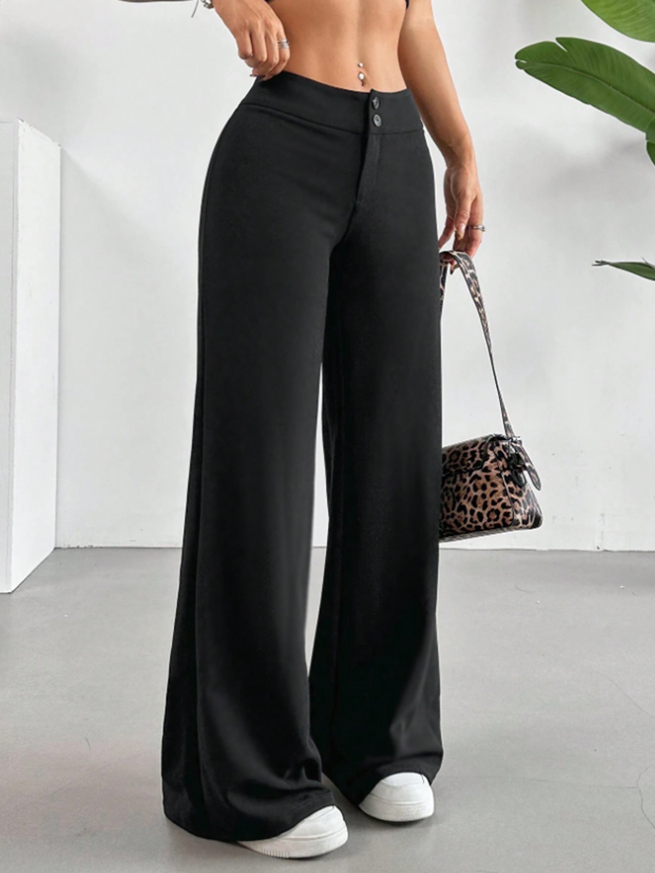 - Casual High-Waist Straight Leg Pants | Comfortable Fit, Button Detail, Solid Color, Suitable for All Seasons