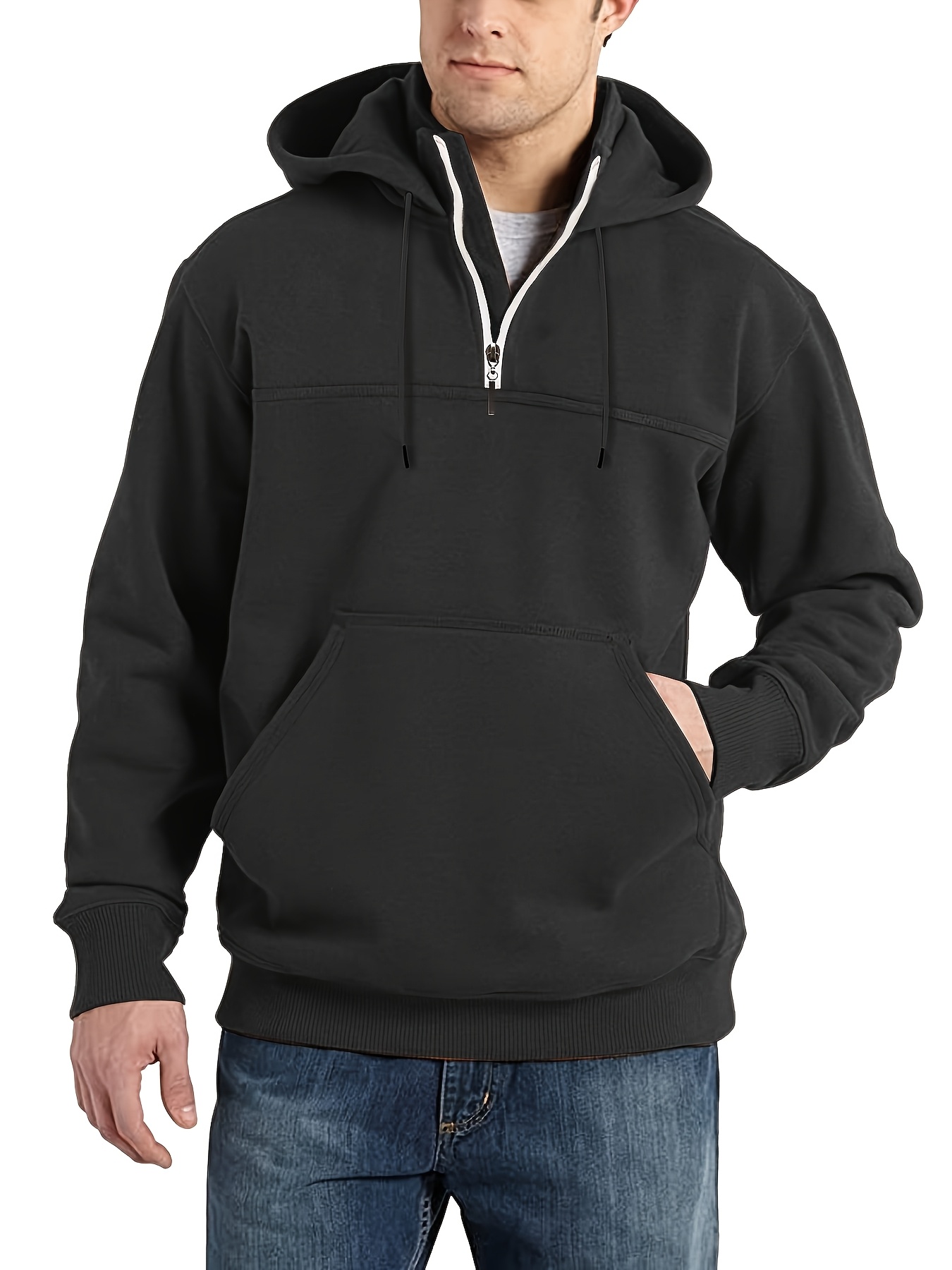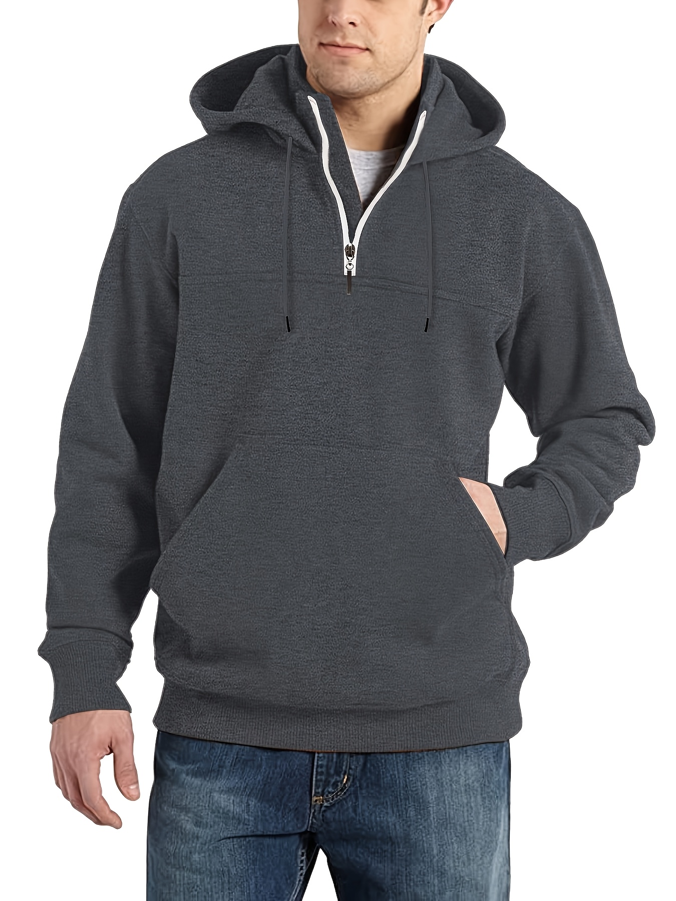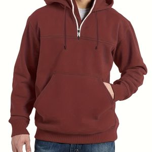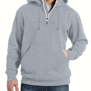 Men’s New Knitted Casual Hooded Sweatshirt – Spring and Autumn Trendy Top | Suitable as a Gift – Quarter Zip – Regular Fit – Long Sleeve – Solid Color