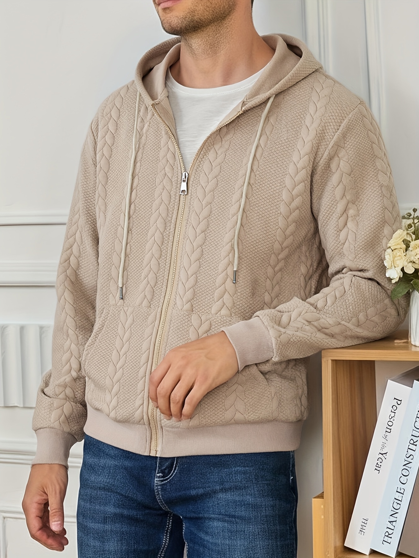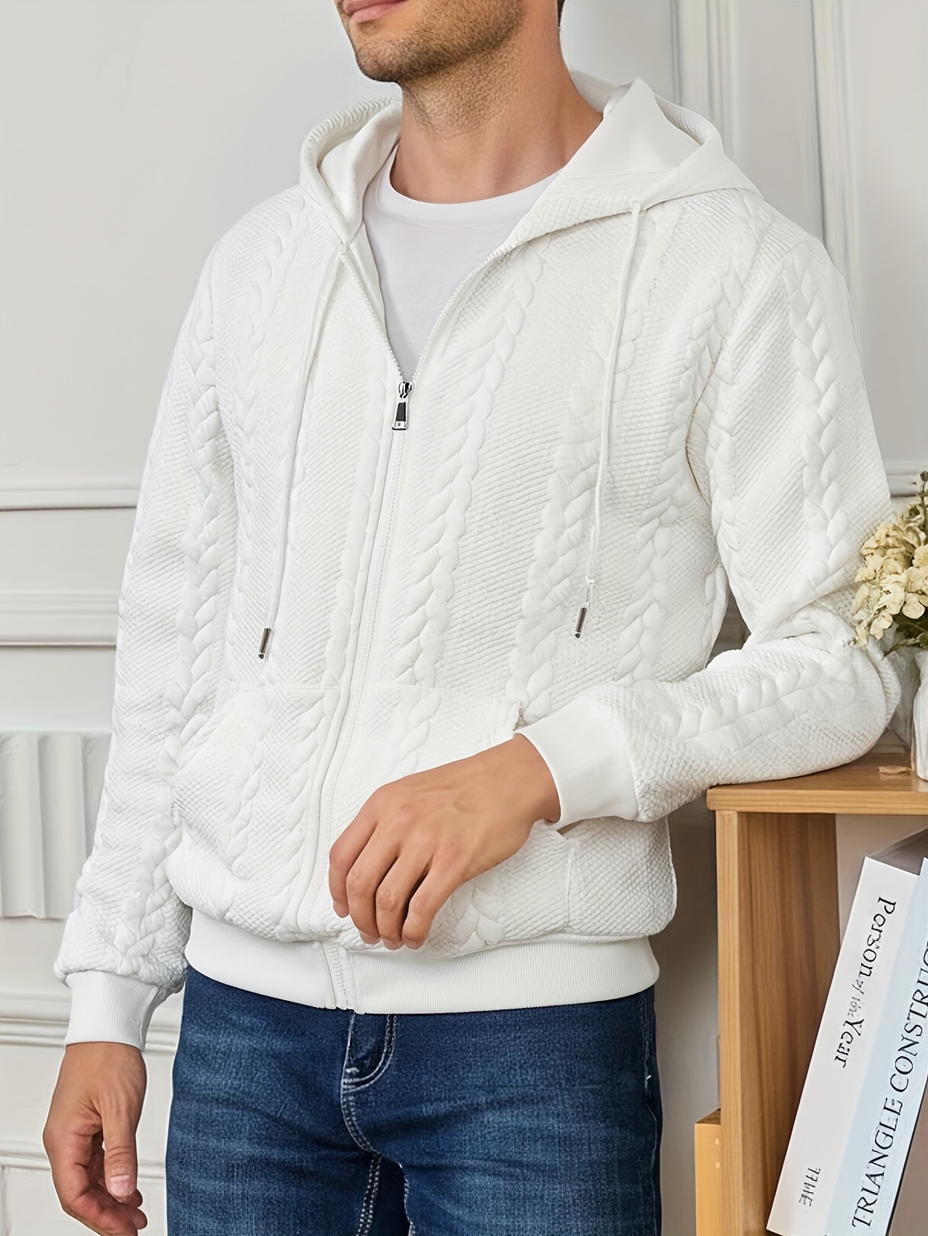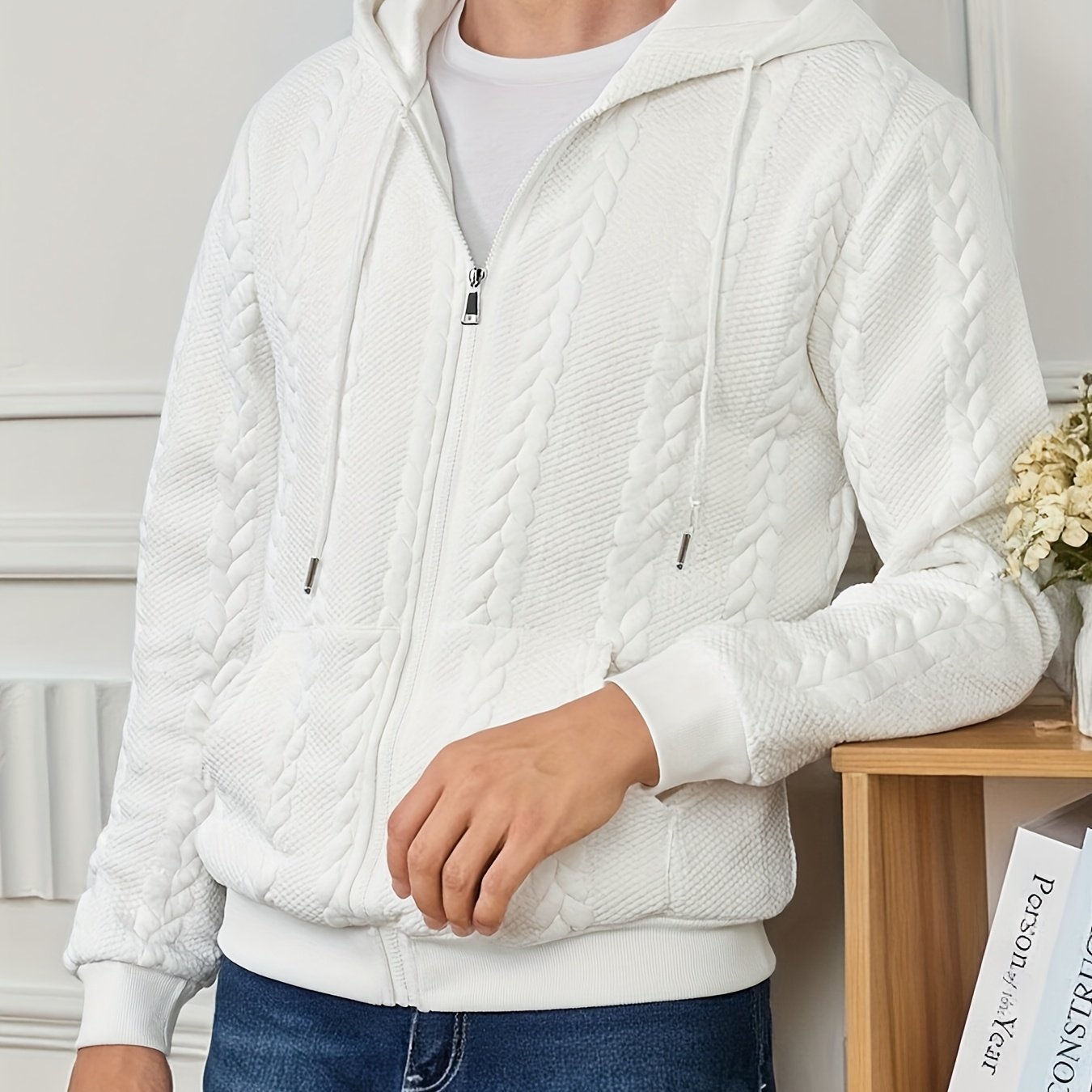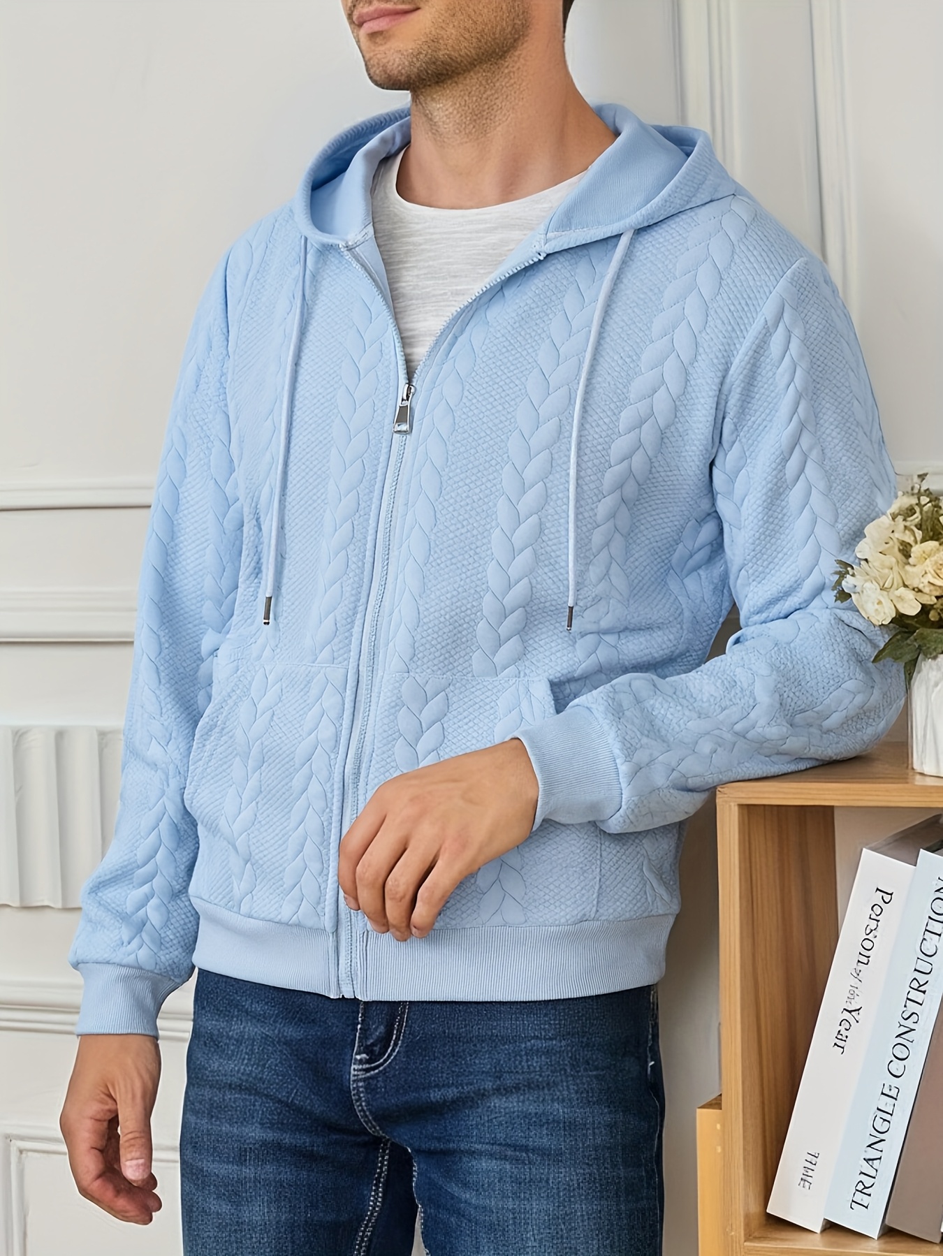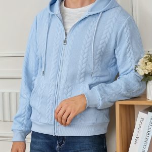 Men’s new Men’s sweatshirt European and American large size jacquard casual tops hot solid color zipper fashion casual hoodie