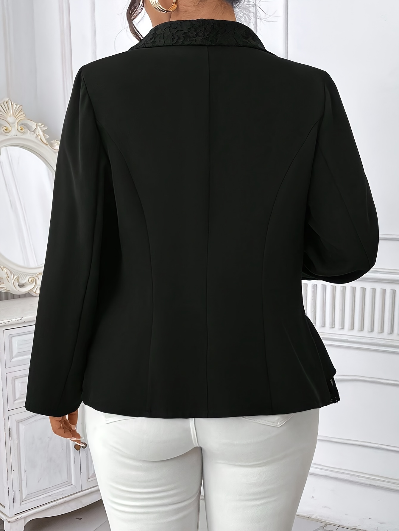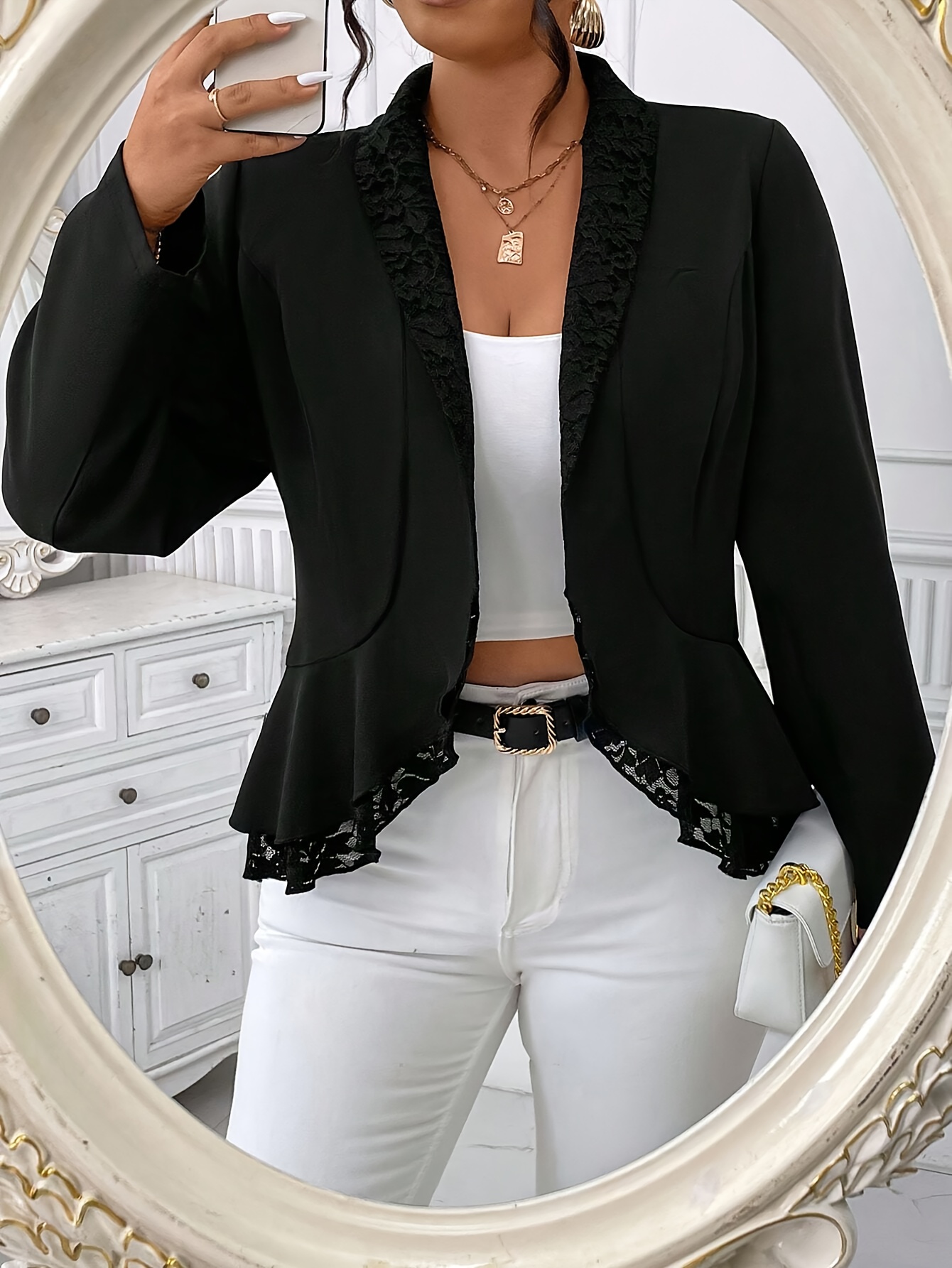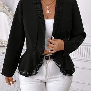 Plus Size, Didi Women’s Plus Size Elegant Casual Fashion Commuter Solid Color Lace Patch Collar Long Sleeve Jacket with Lace Ruffle Hem Casual Blazer