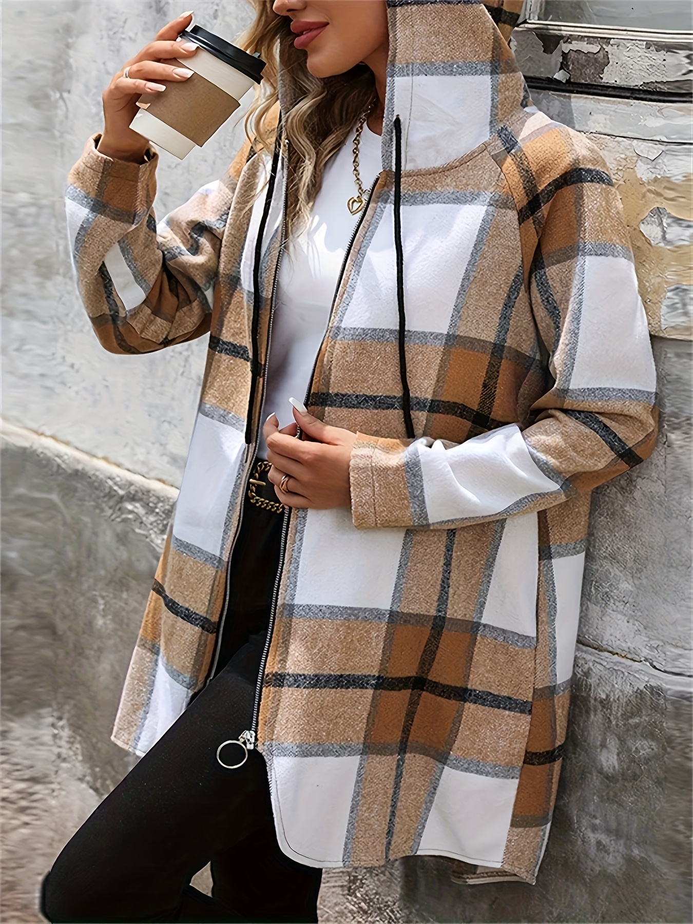- Plus Size, Plus Size Plaid Hooded Zip-Up Jacket