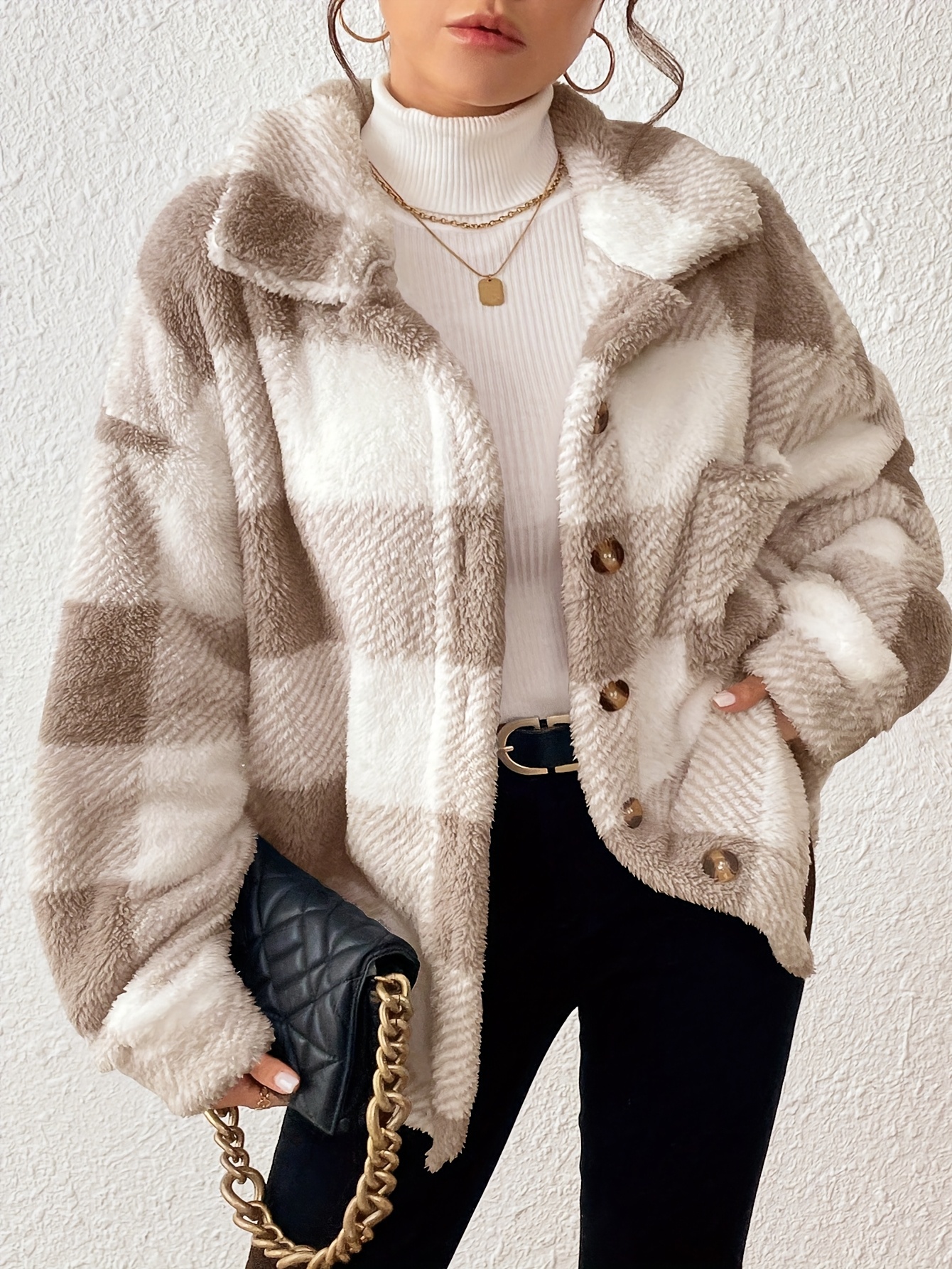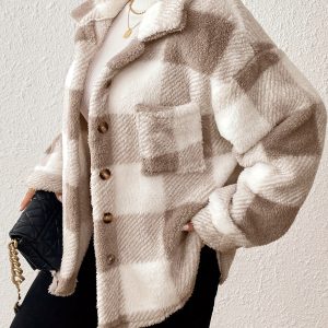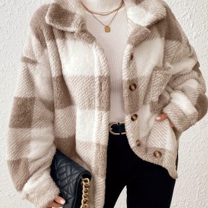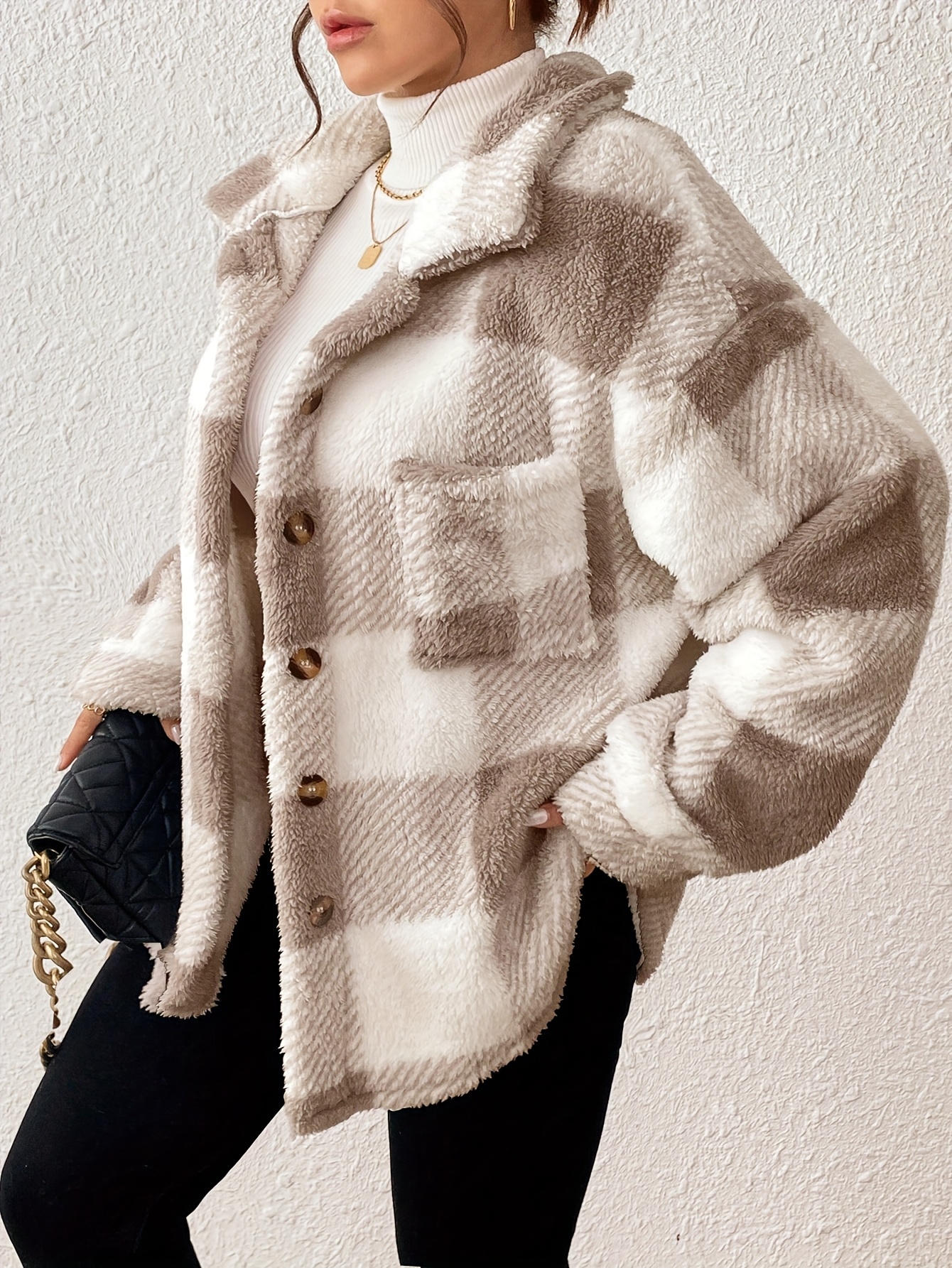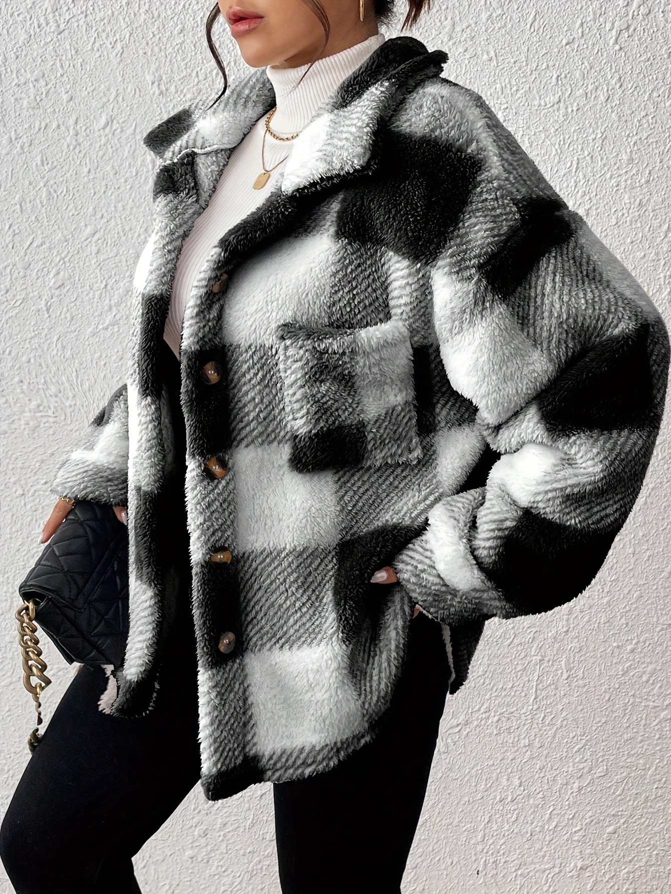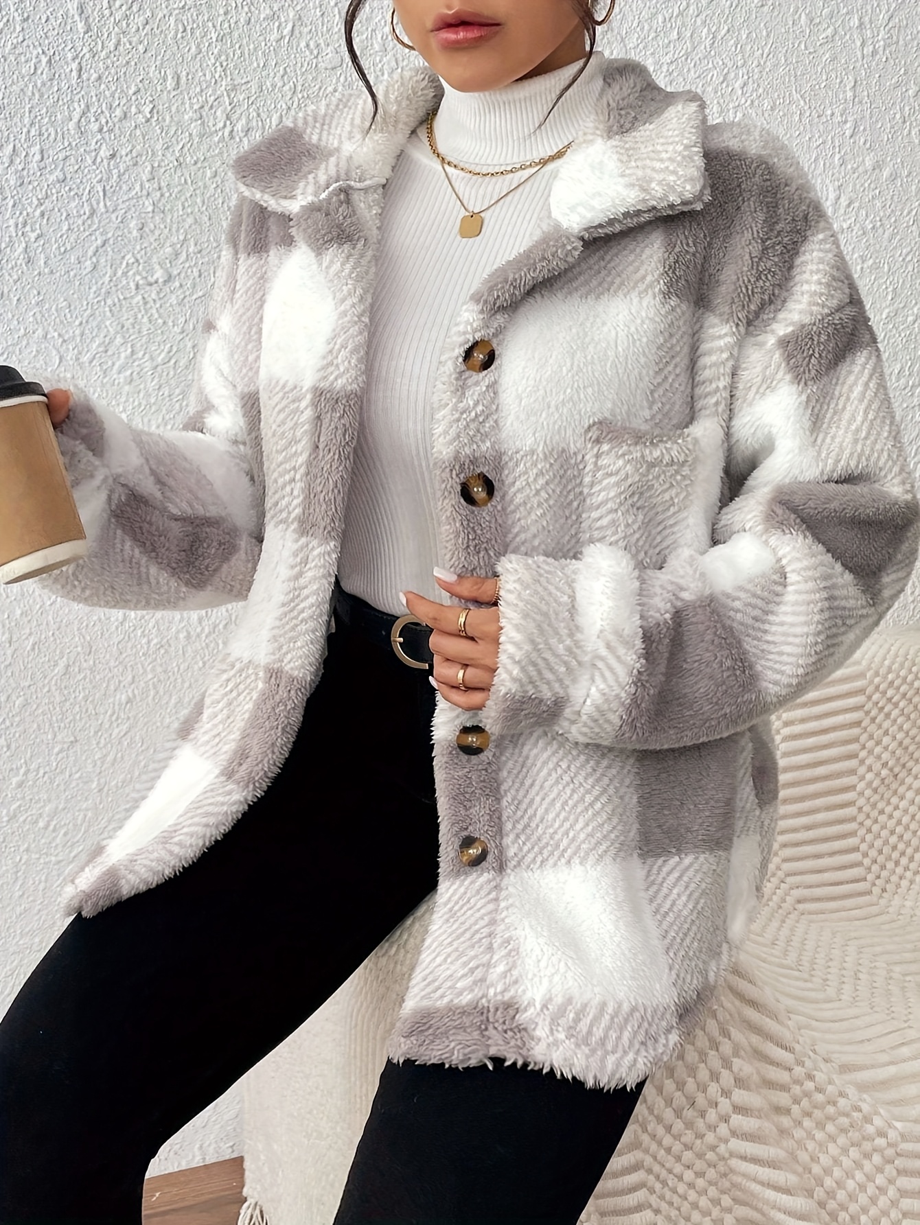 Plus Size – Plus-Size Women’S Long-Sleeve Checkered Jacket, Casual Outerwear for Autumn And Winter, Warm And Stylish.