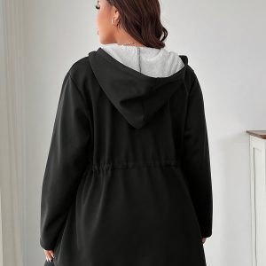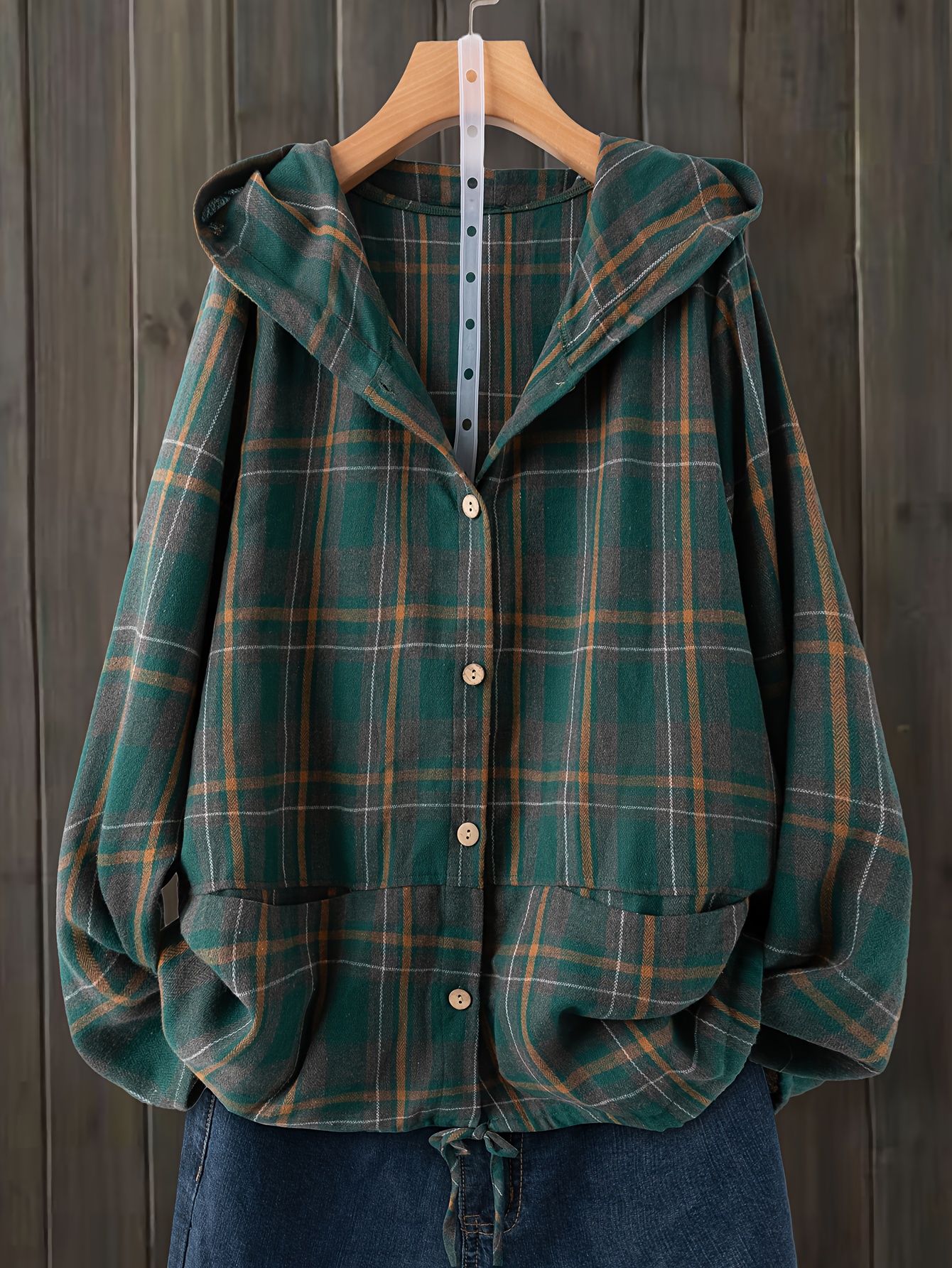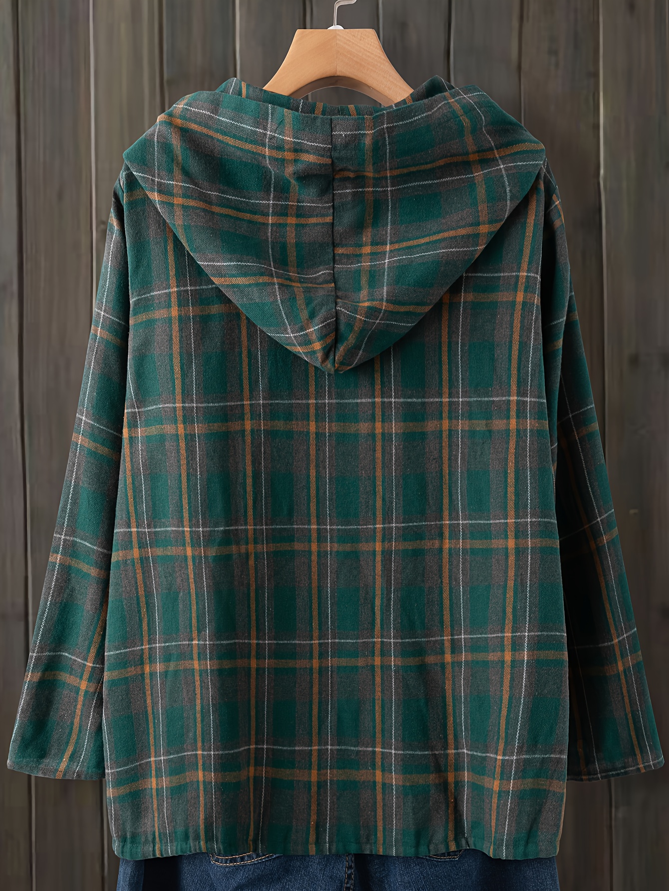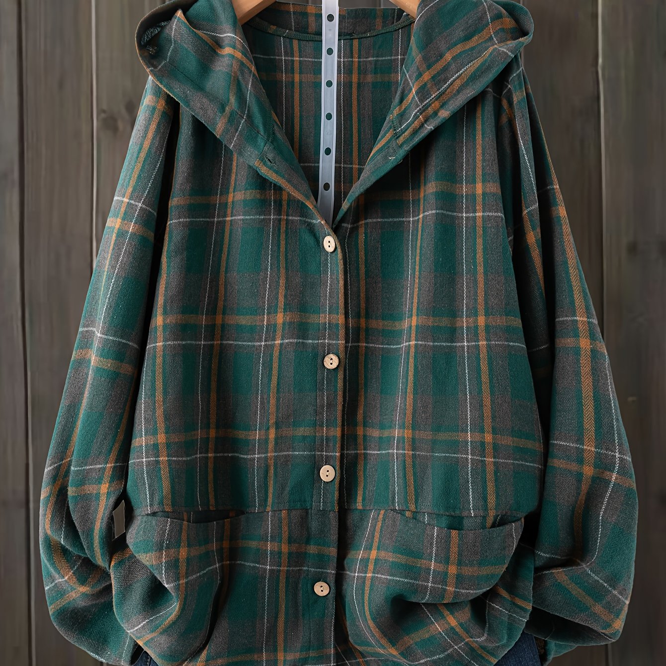 - Plus Size – Plus-Size Women’S Stylish Plaid Striped Hooded Coat Featuring Pockets, a Tie, And Button Design.