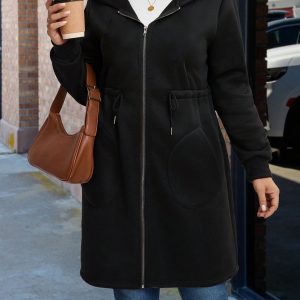 Plus Size – Plus Size – Plus Size – Plus Size, Women’S Plus Size Winter Hooded Coat – Elegant Long Jacket with Front Zipper Closure, Non-Stretchy Fabric, H-Line Silhouette for Cold Weather – Formal & Everyday Outerwear (Black) – Easy-Care Winter Clothing, Ladies Winter Coats, Seasonal Fashion, Classic Design, Durable Construction, Office Wear, Cold Weather Gear, Hooded Design, Cozy Lining, Professional Women, Thick, Winter Coat, Women Plus Size, Plus Size Winter Jacket, Winter Jacket