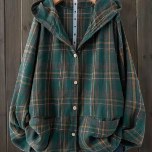 Be the first to review “Plus Size – Plus-Size Women’S Stylish Plaid Striped Hooded Coat Featuring Pockets, a Tie, And Button Design.” Cancel reply