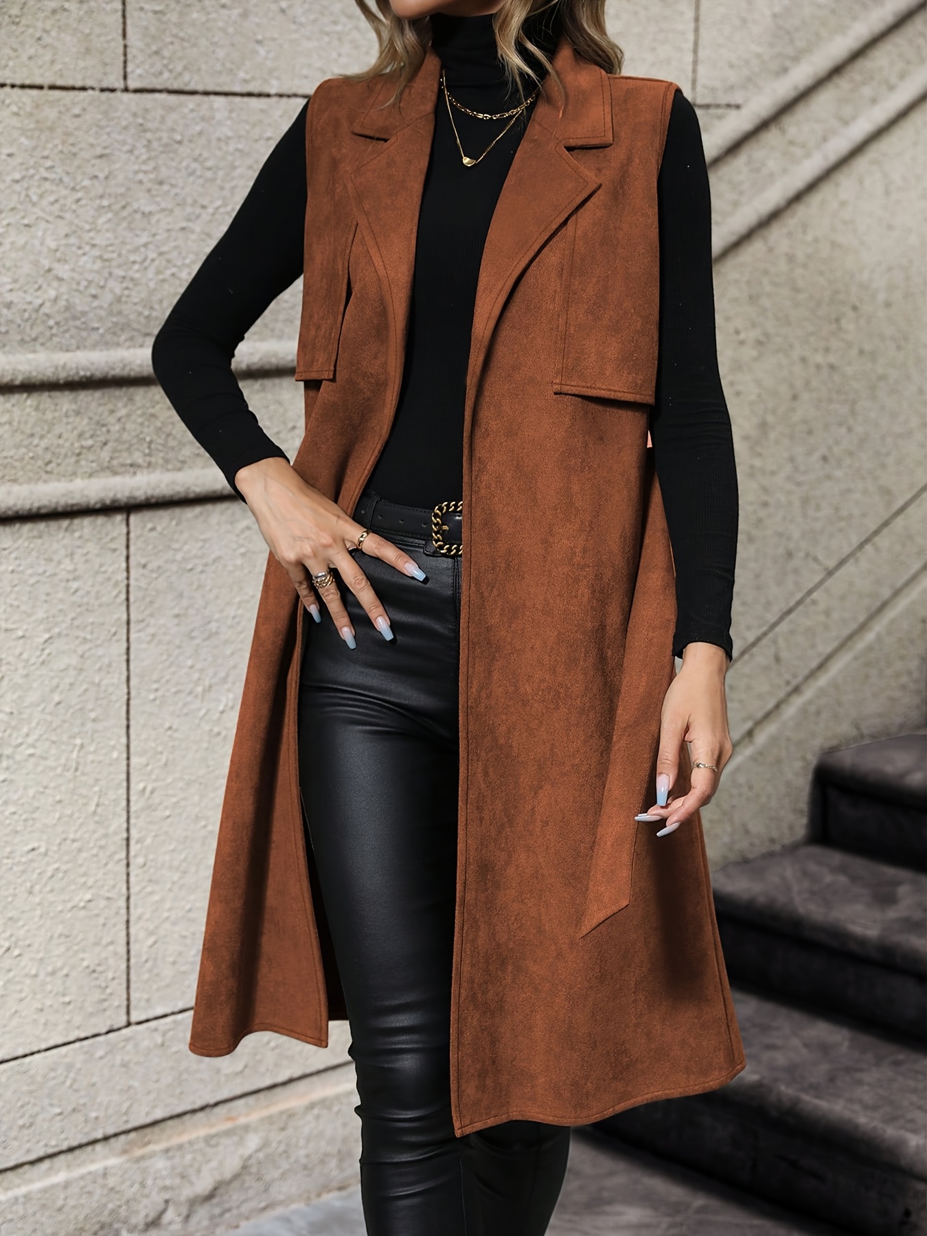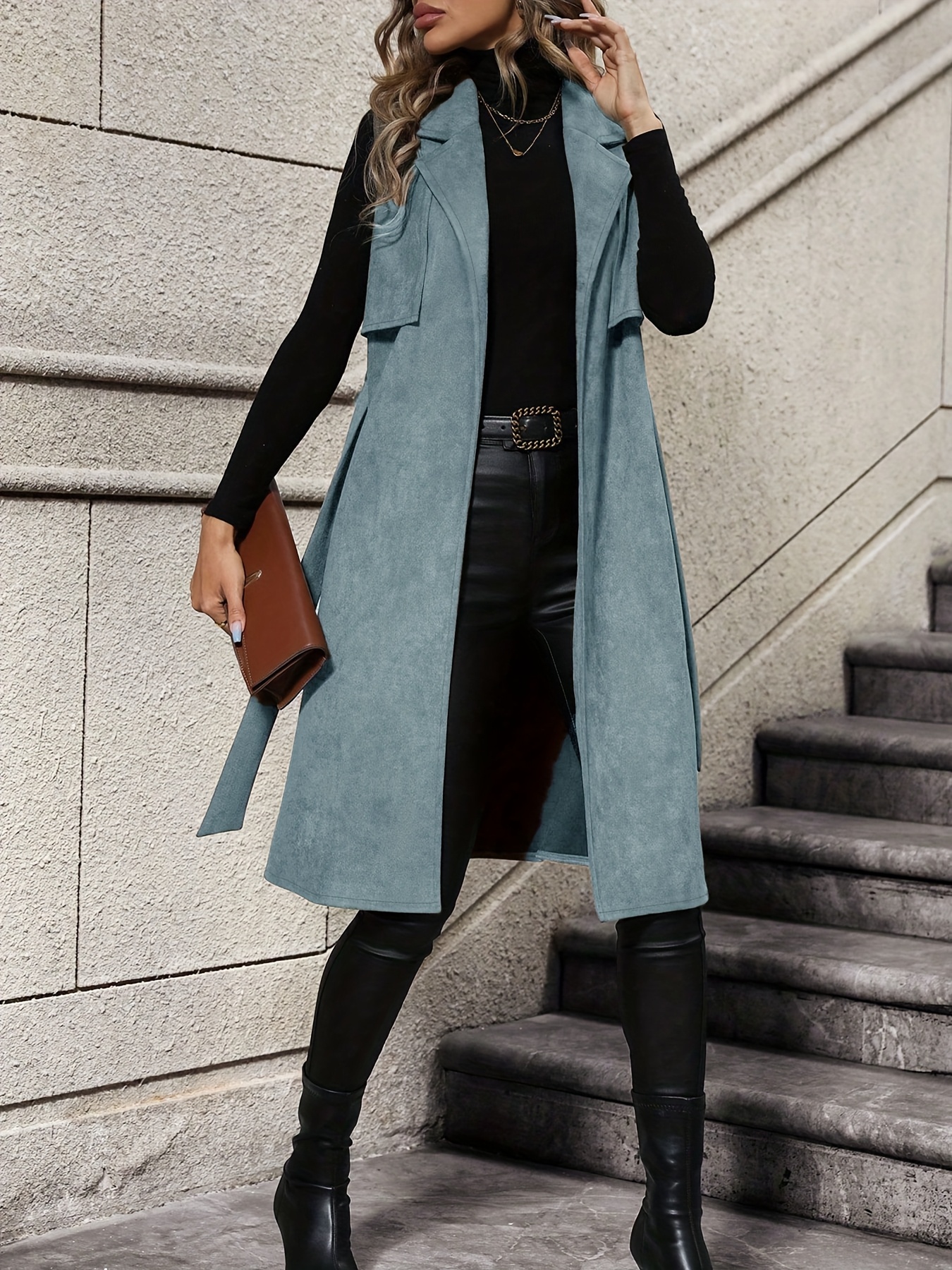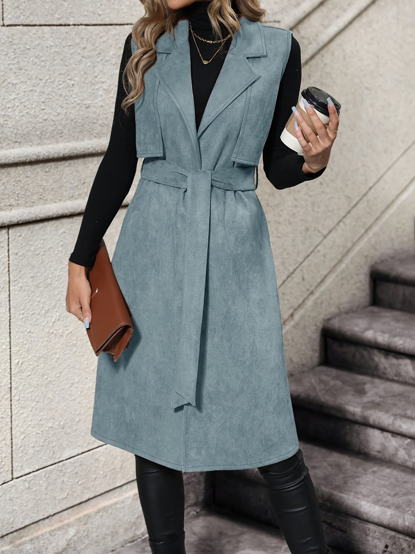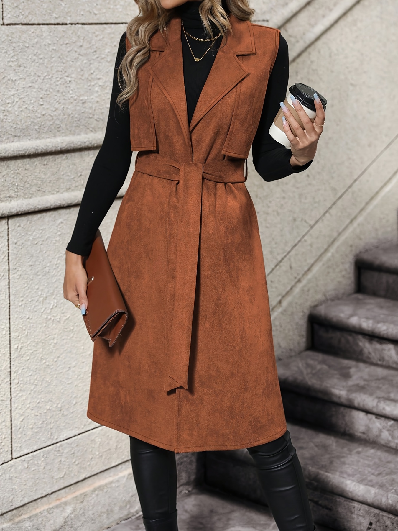 Plus Size, Plus-size Women’s Vest Coat, Elegant Commuting Suede Blazer with High Lapel, Mid-length with Belt, Warm and Windproof, Easy to Match