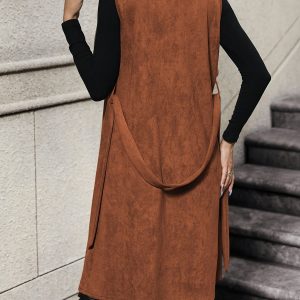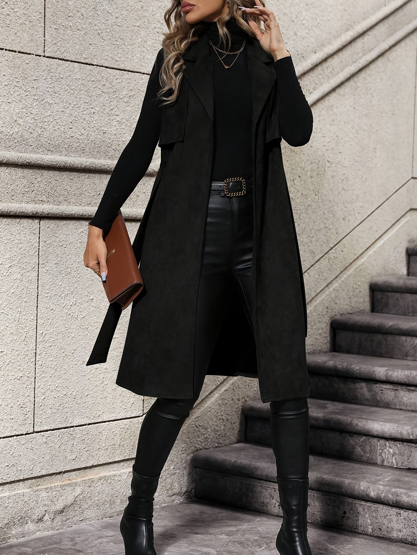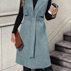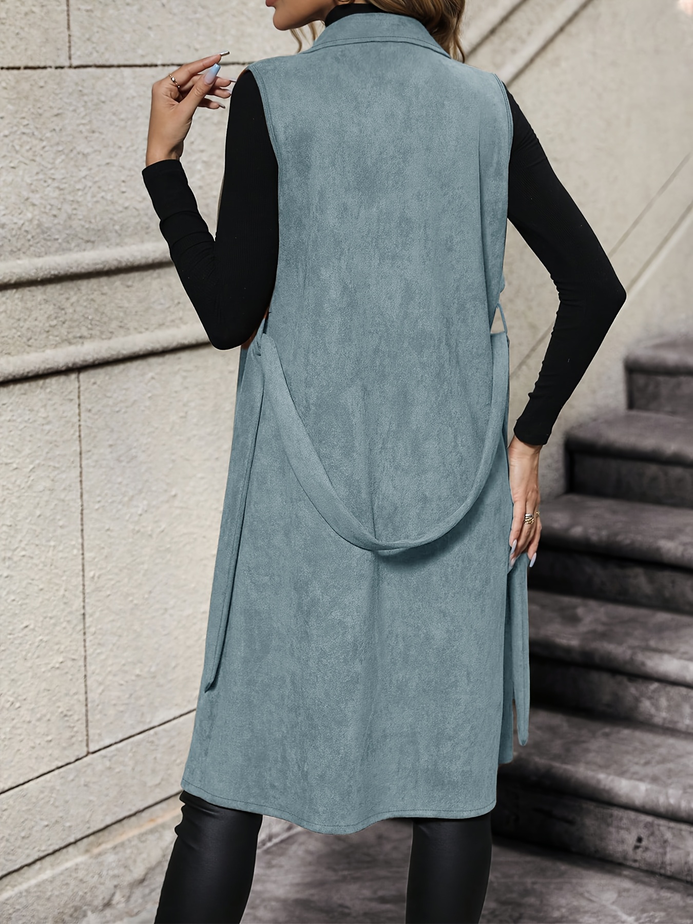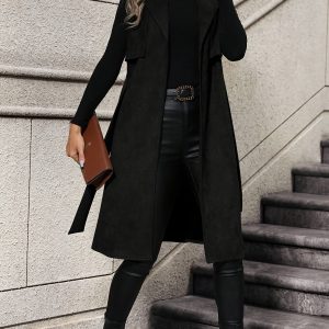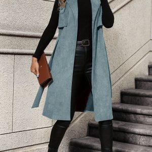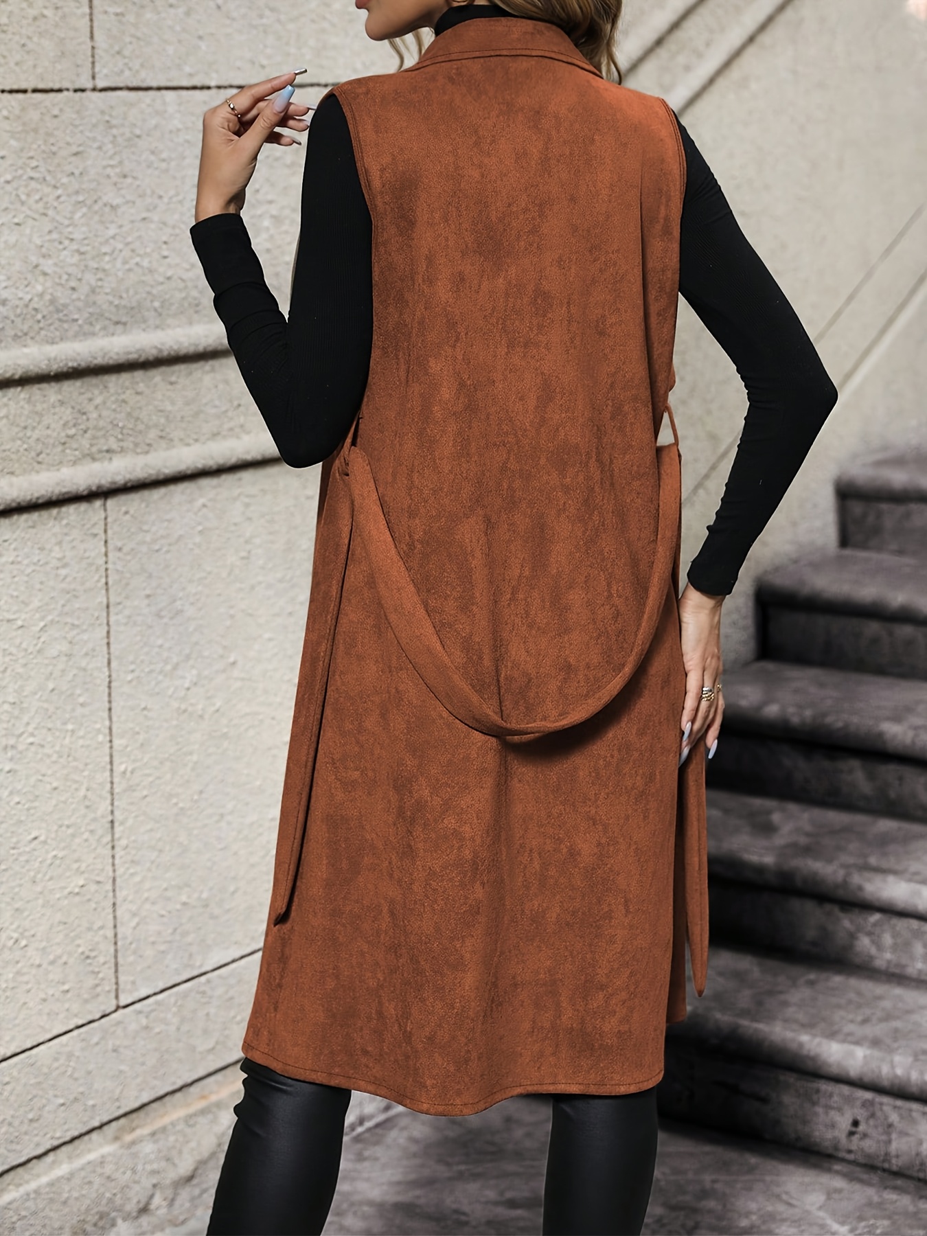 Plus Size, Plus-size Women’s Vest Coat, Elegant Commuting Suede Blazer with High Lapel, Mid-length with Belt, Warm and Windproof, Easy to Match