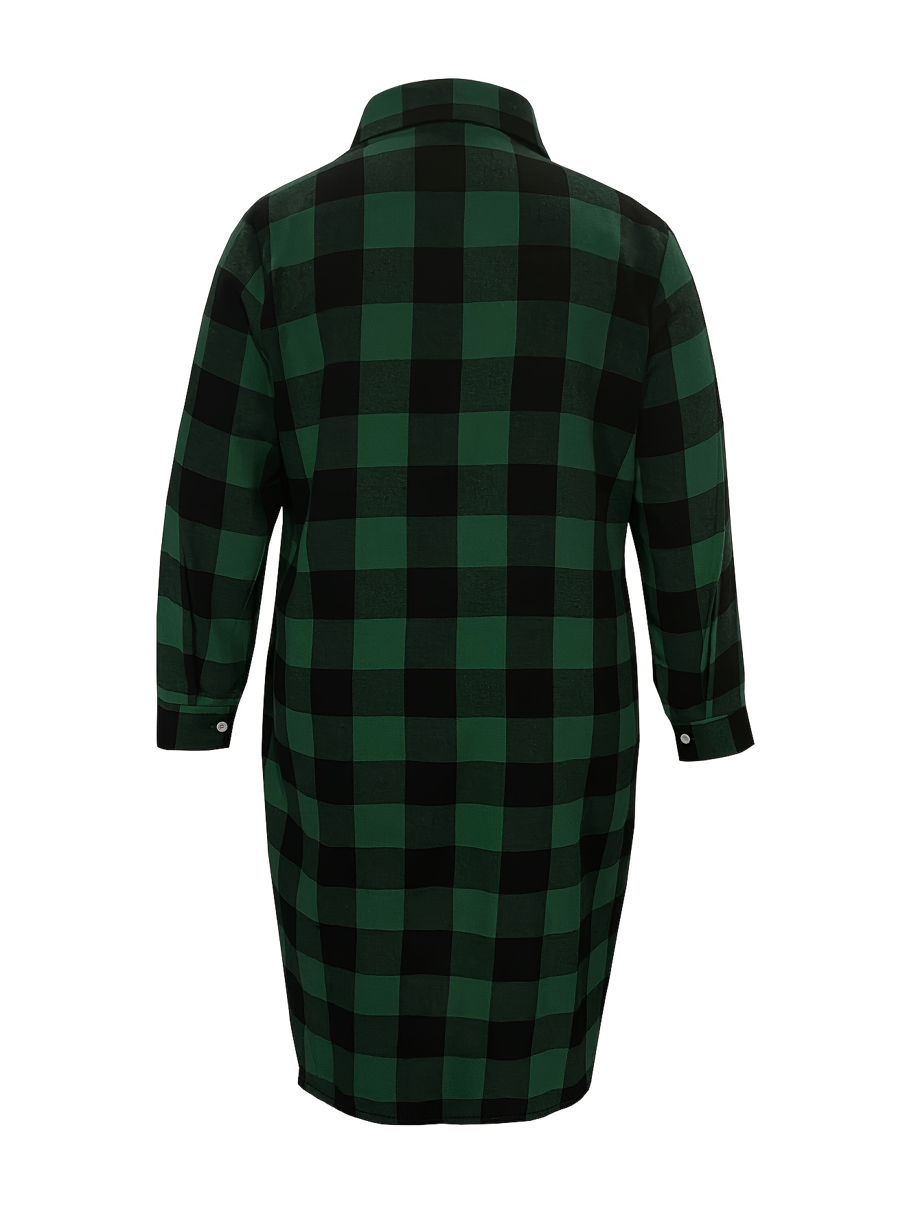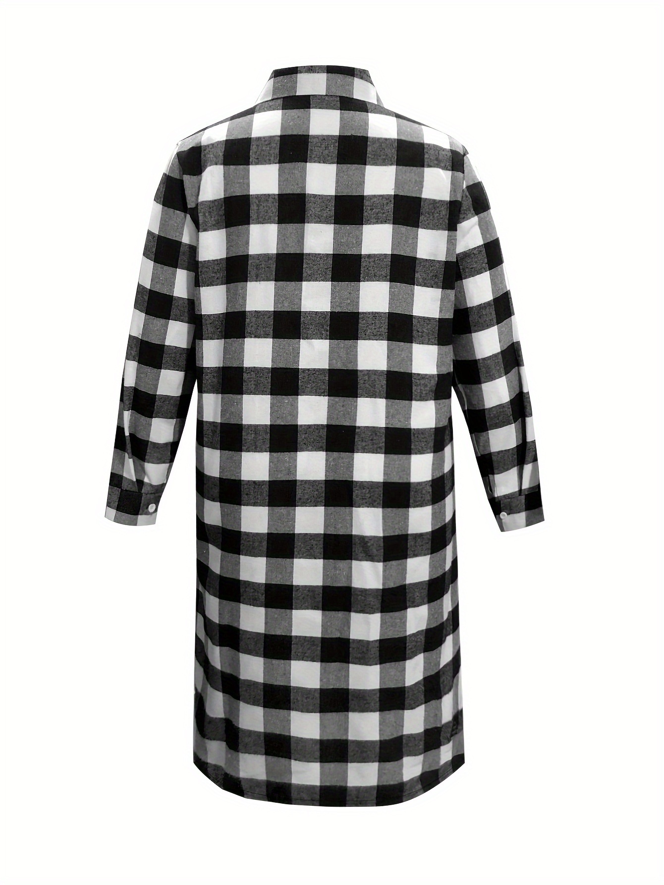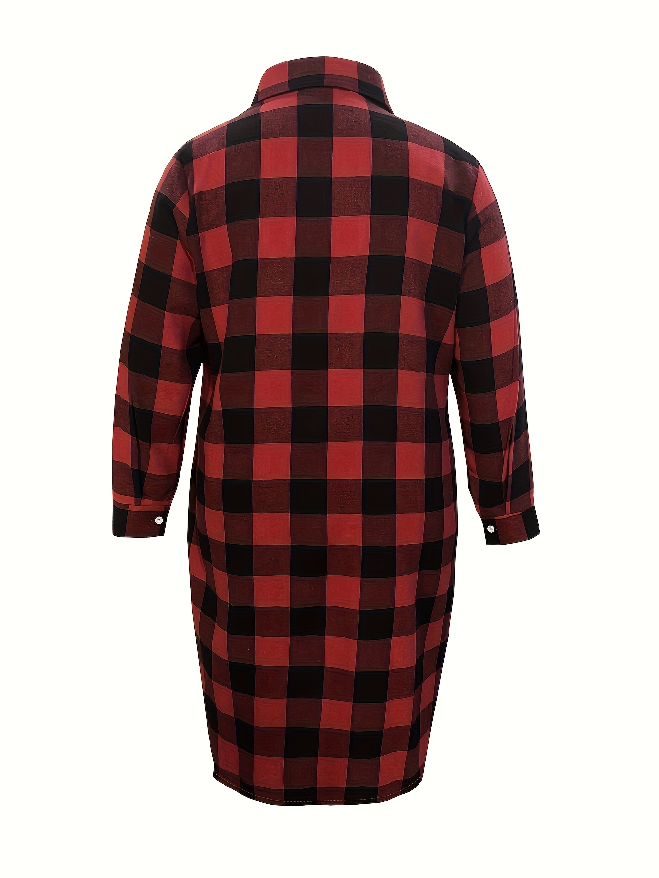 Plus Size, Women’s Plus Size Plaid Button- Overshirt Jacket – Collar Longline Coat with Button Front, Lightweight Warm Fallu002FWinter Topper, Casual Elegant Half-Door Plaid Blouse for Layering (Machine Washable)