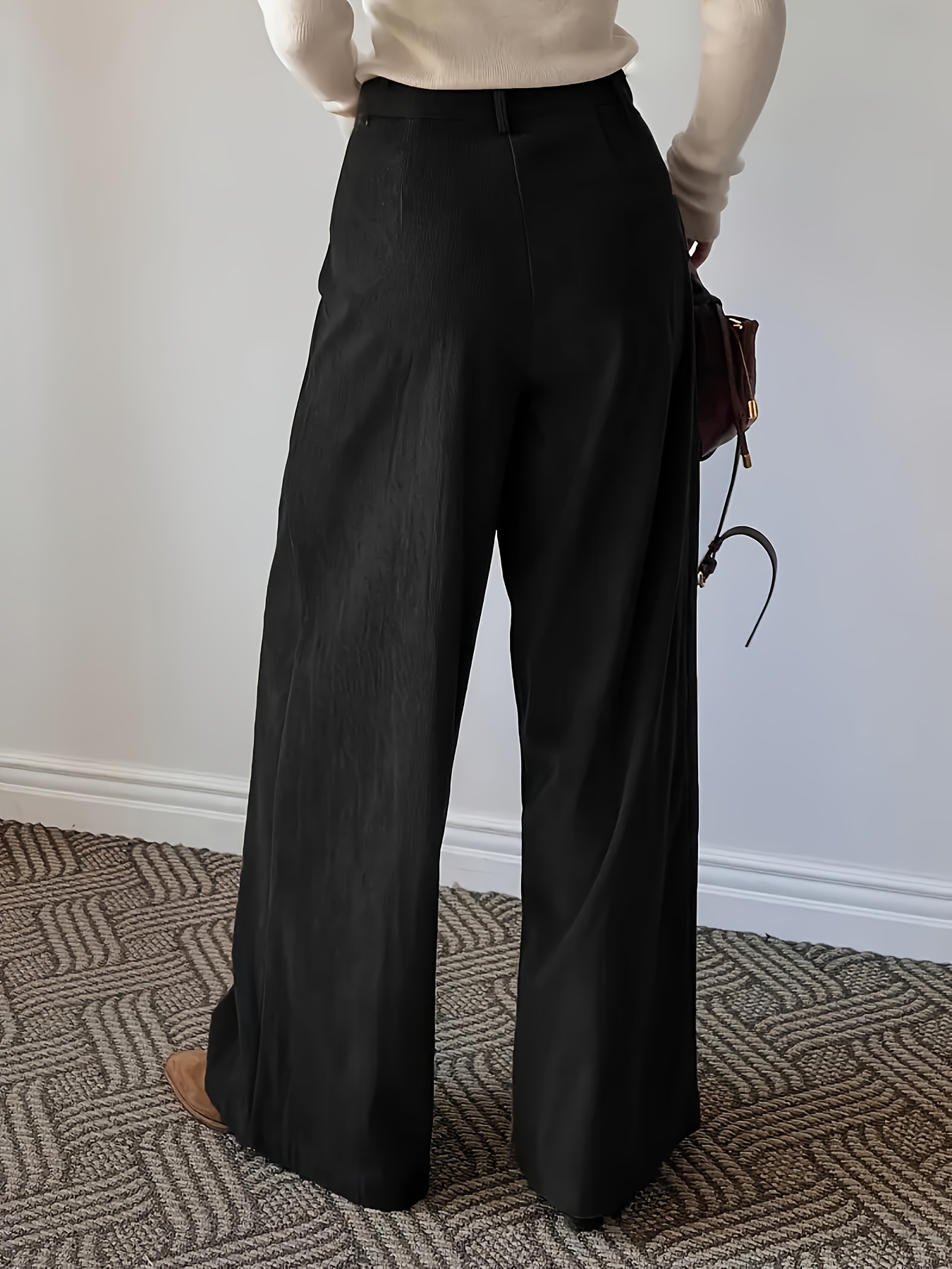 Women’s Corduroy Pants – Retro Straight Leg Full-Length Trousers with Built- Zipper Closure, Solid Color (Blacku002FBrownu002FTanu002FNavy), Pockets – Machine Washable Winter Fall Casual Elegant Pants for or Outings – Corduroy Leg Warmth Non-Stretch