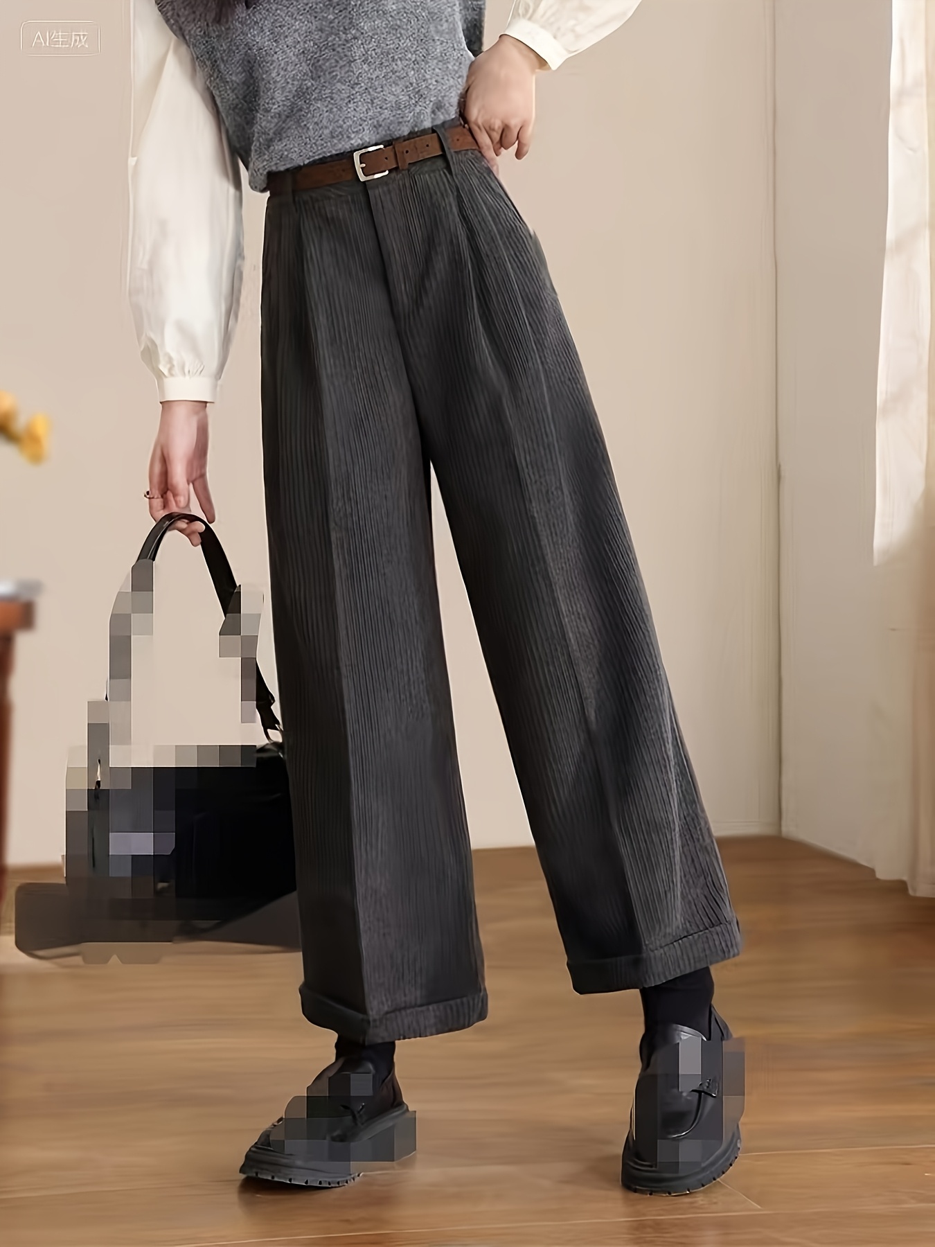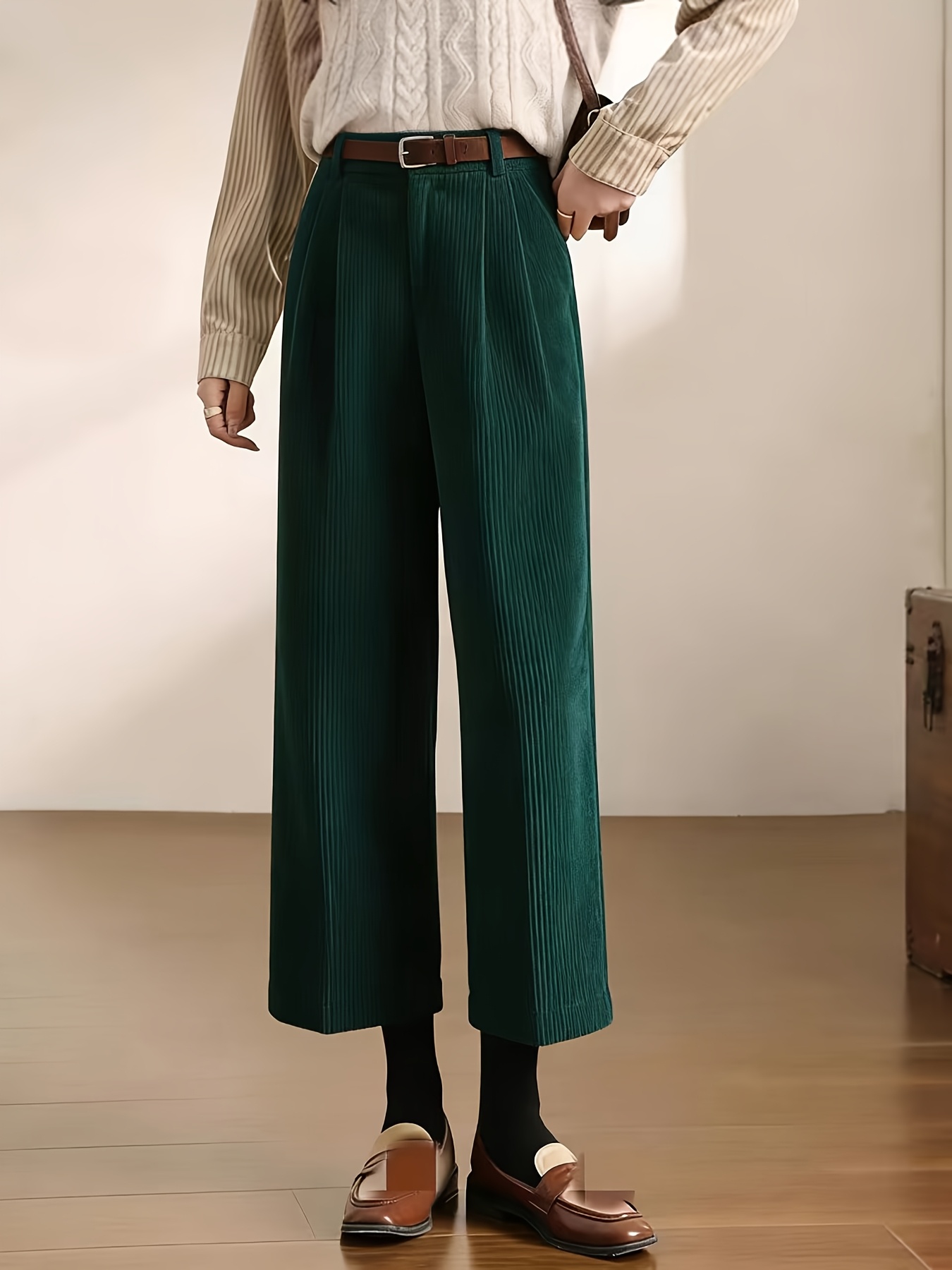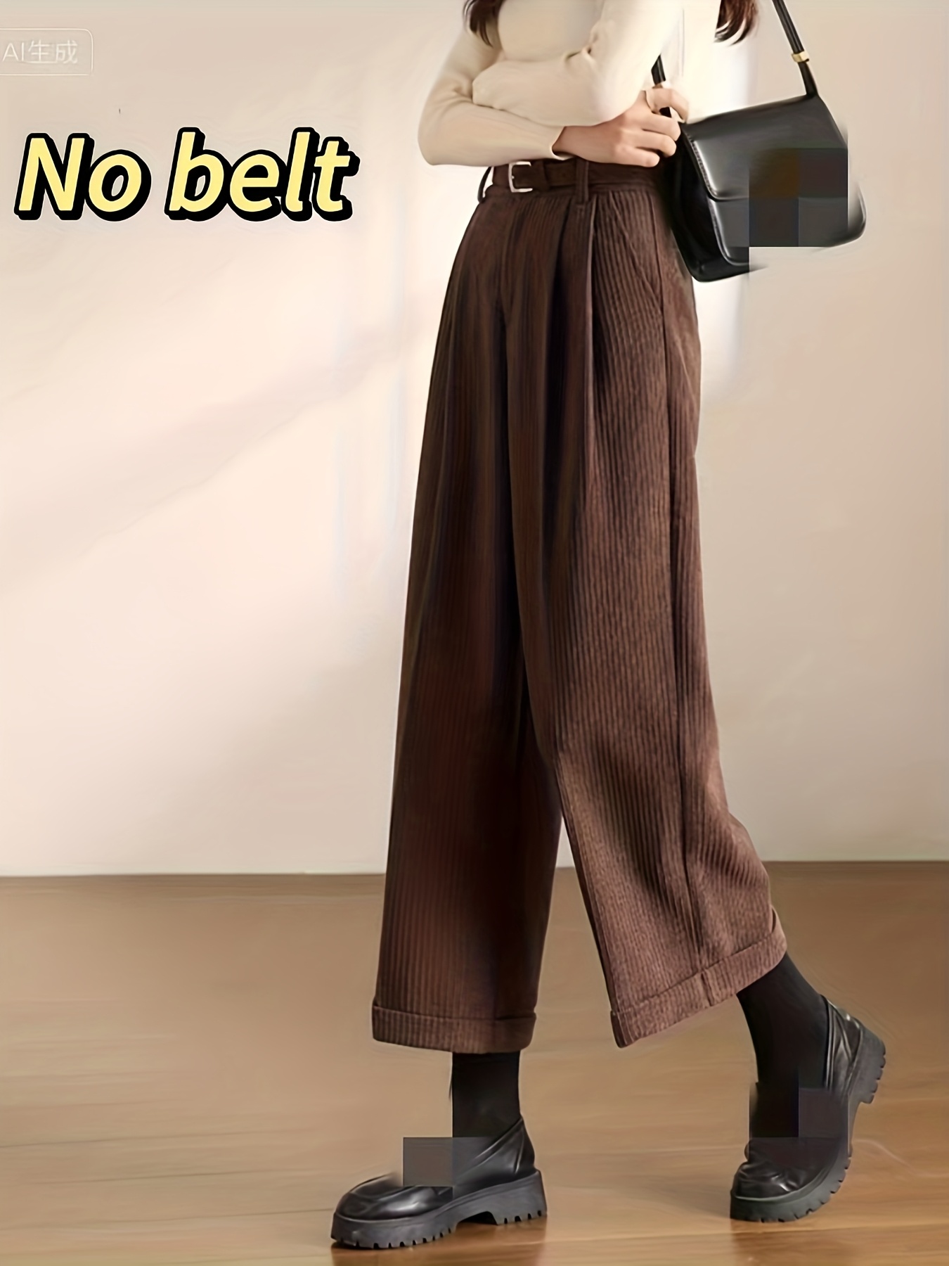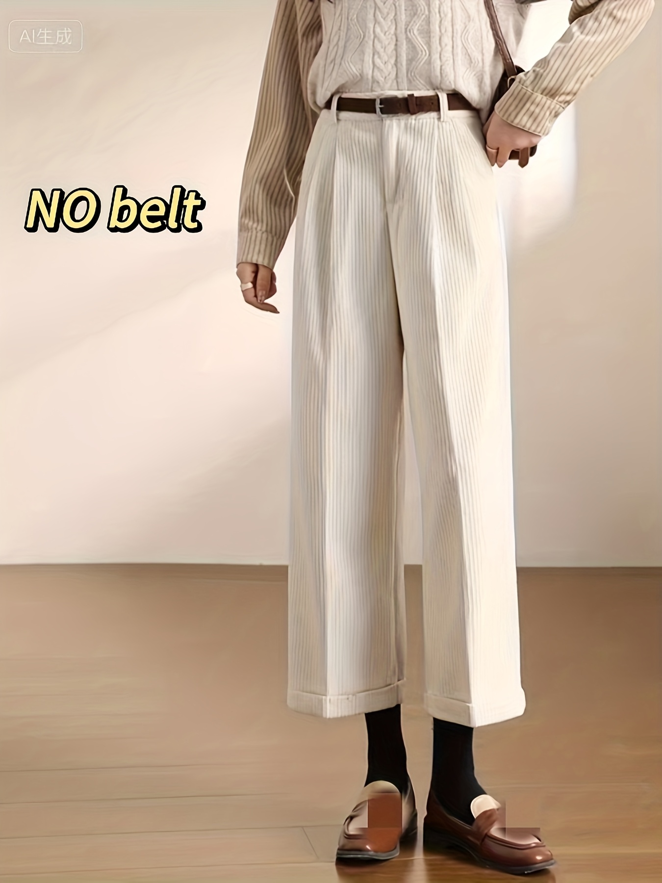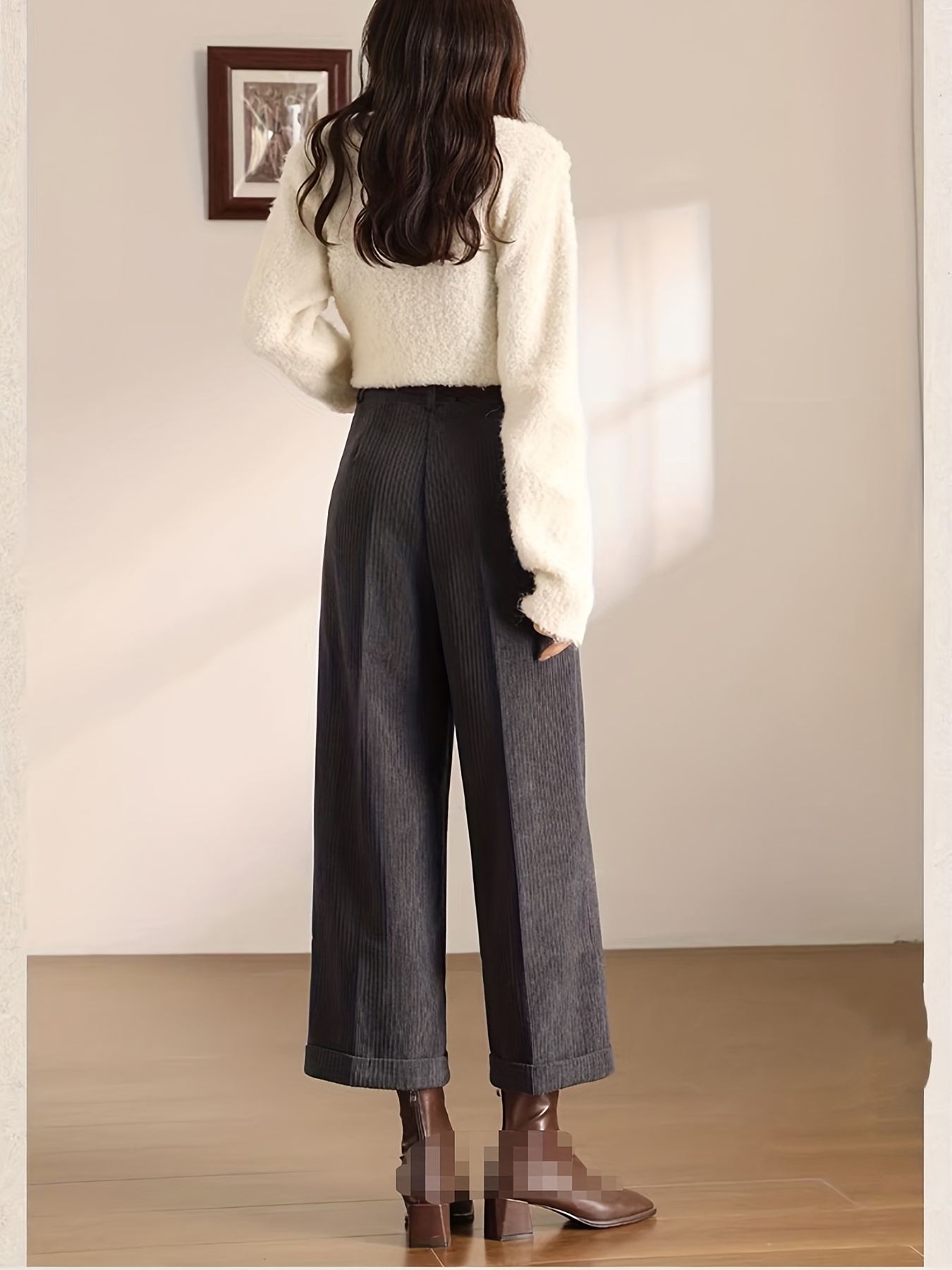 Women’S Corduroy Wide-Leg Cropped Pants | High-Waist, Loose Fit, Zipper Closure, All-Season, Solid Color, Straight Leg Style