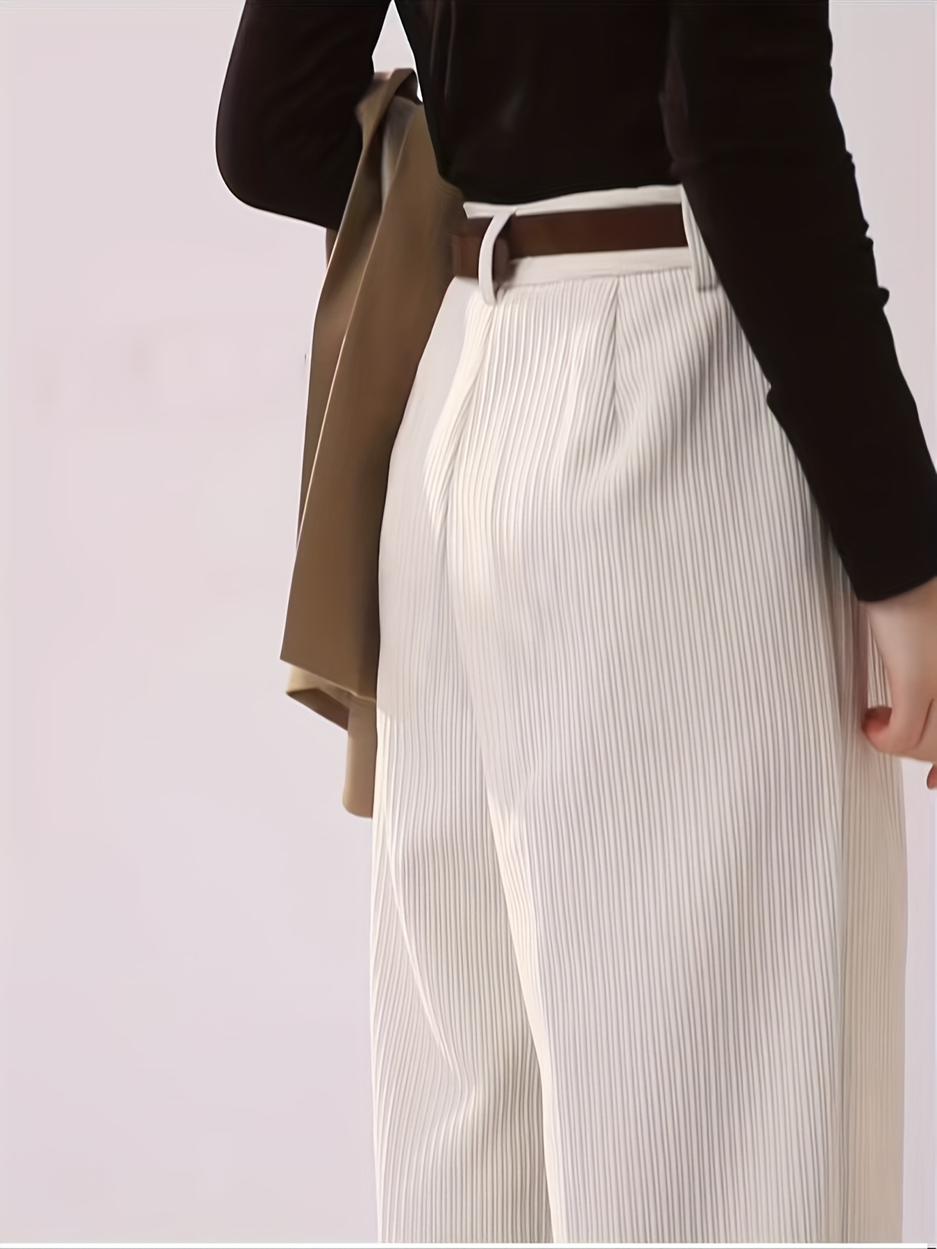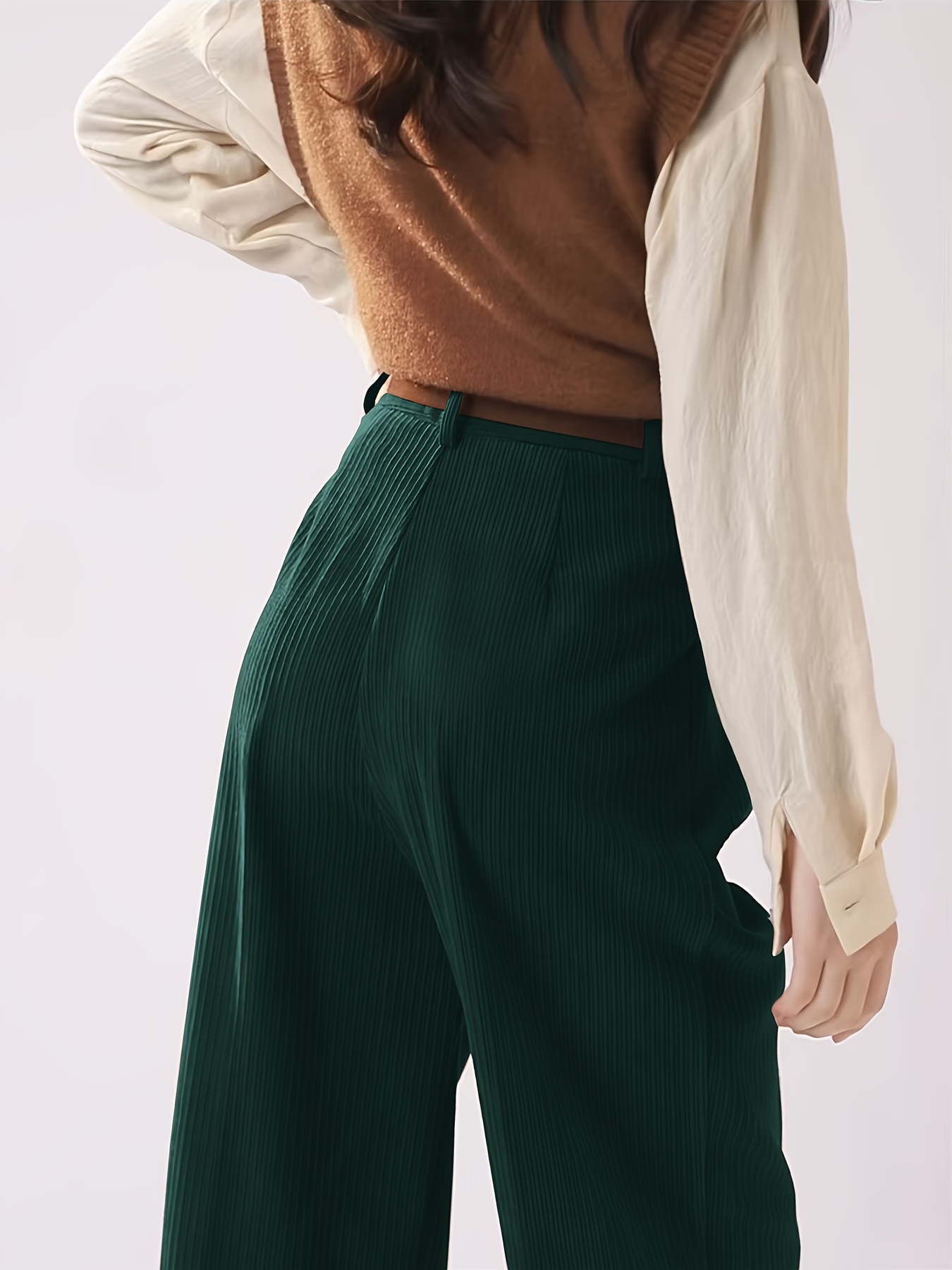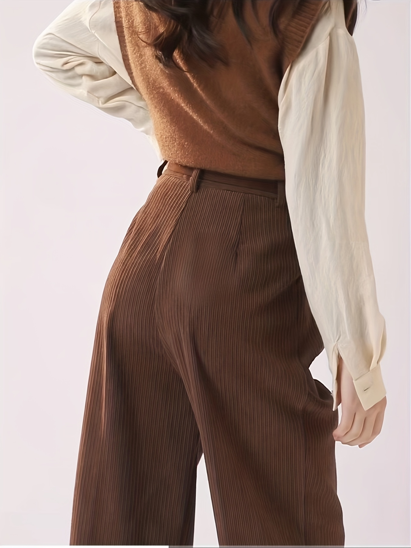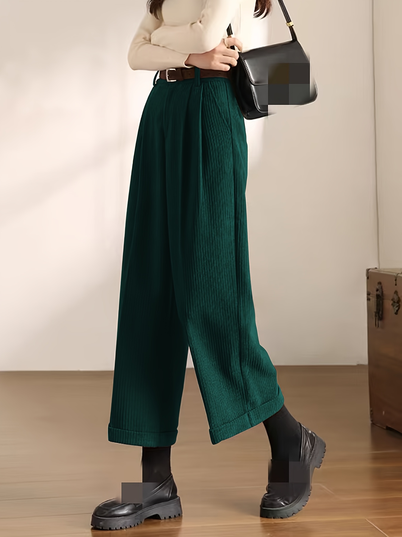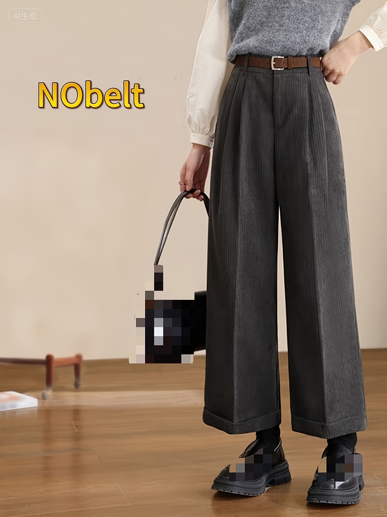 Women’S Corduroy Wide-Leg Cropped Pants | High-Waist, Loose Fit, Zipper Closure, All-Season, Solid Color, Straight Leg Style