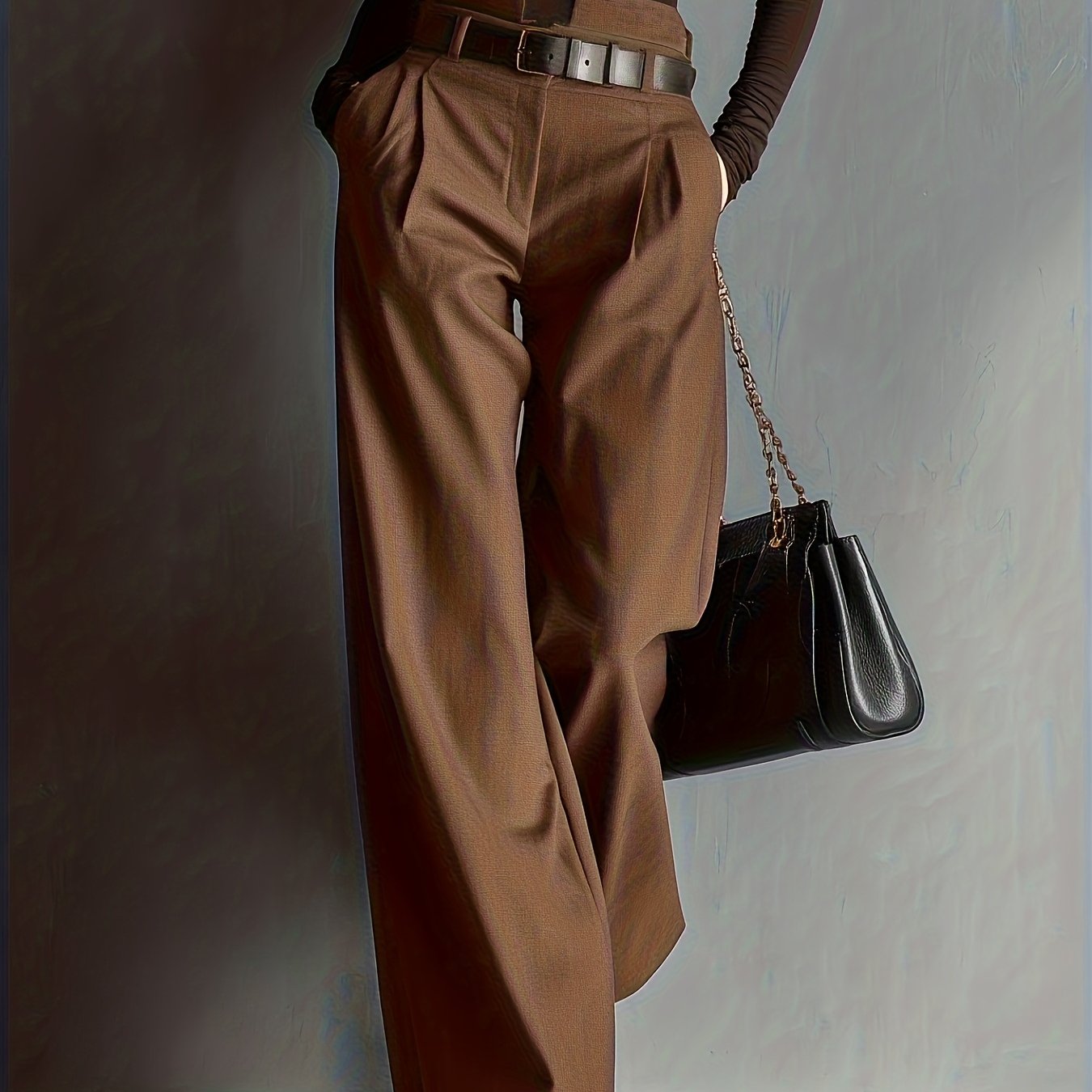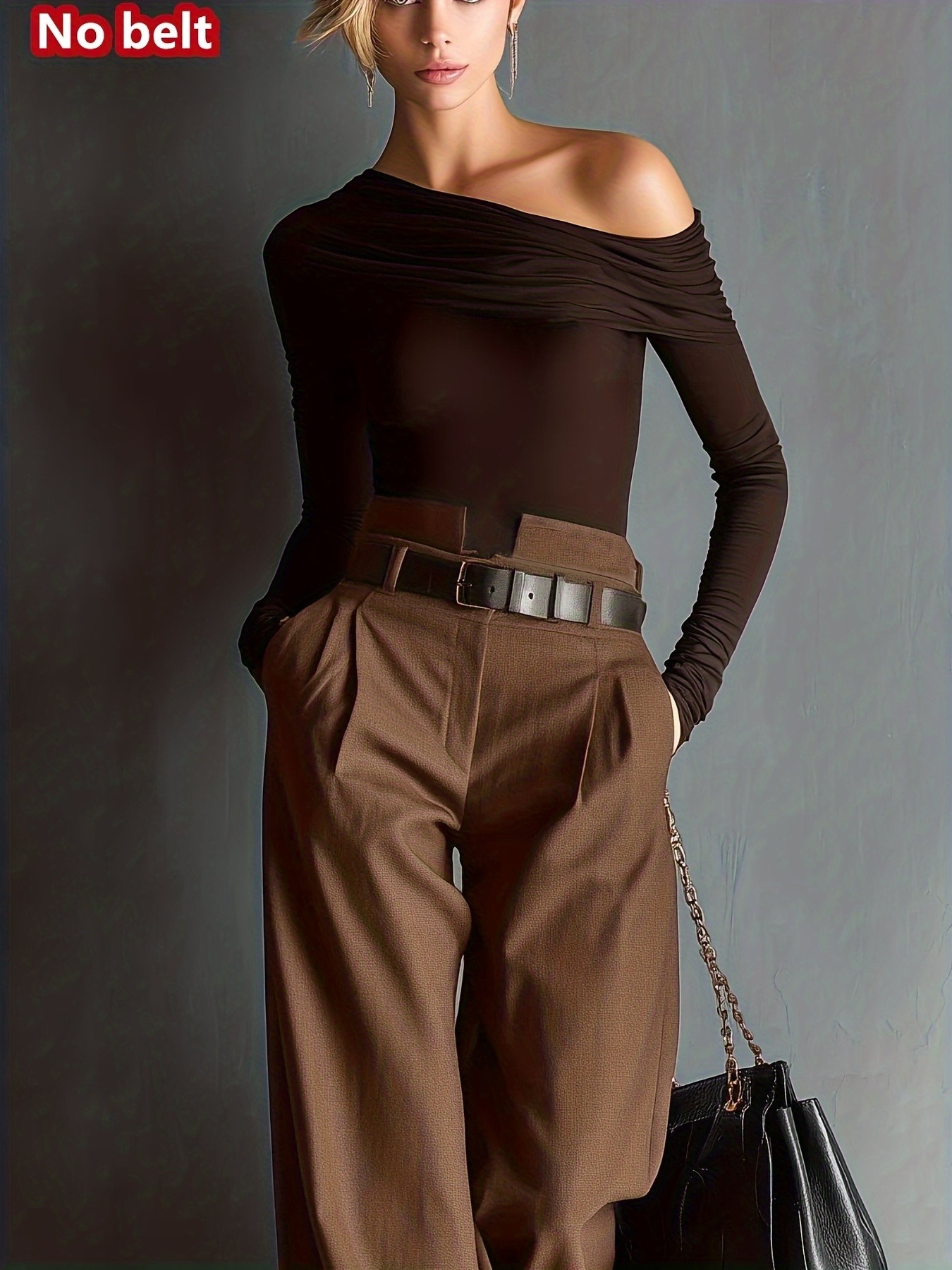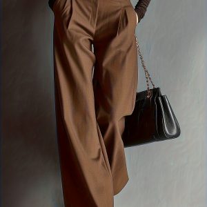 - Women’S Dark Brown High-Waisted Wide-Leg Pants ( Not Included) Summer Solstice
