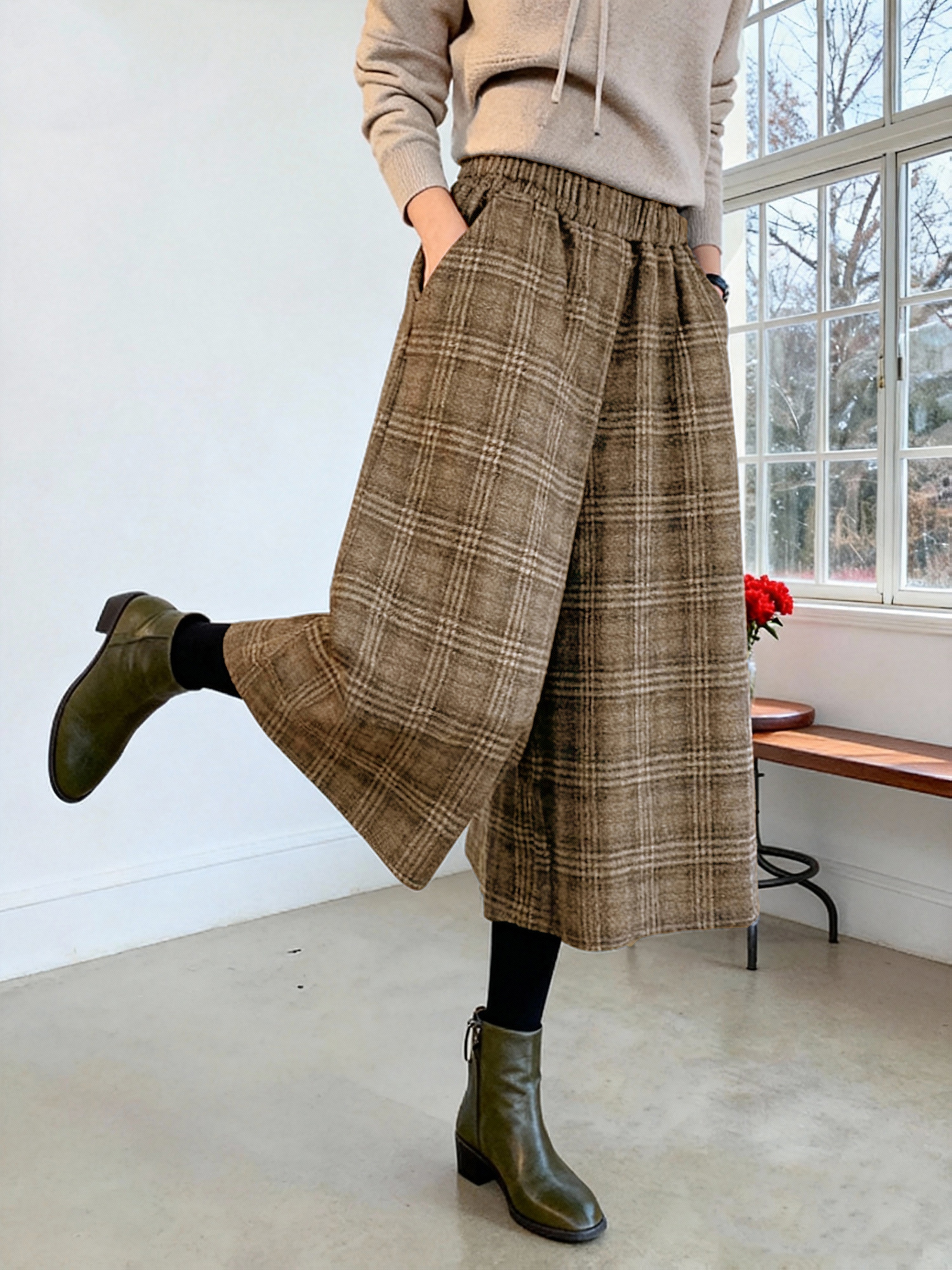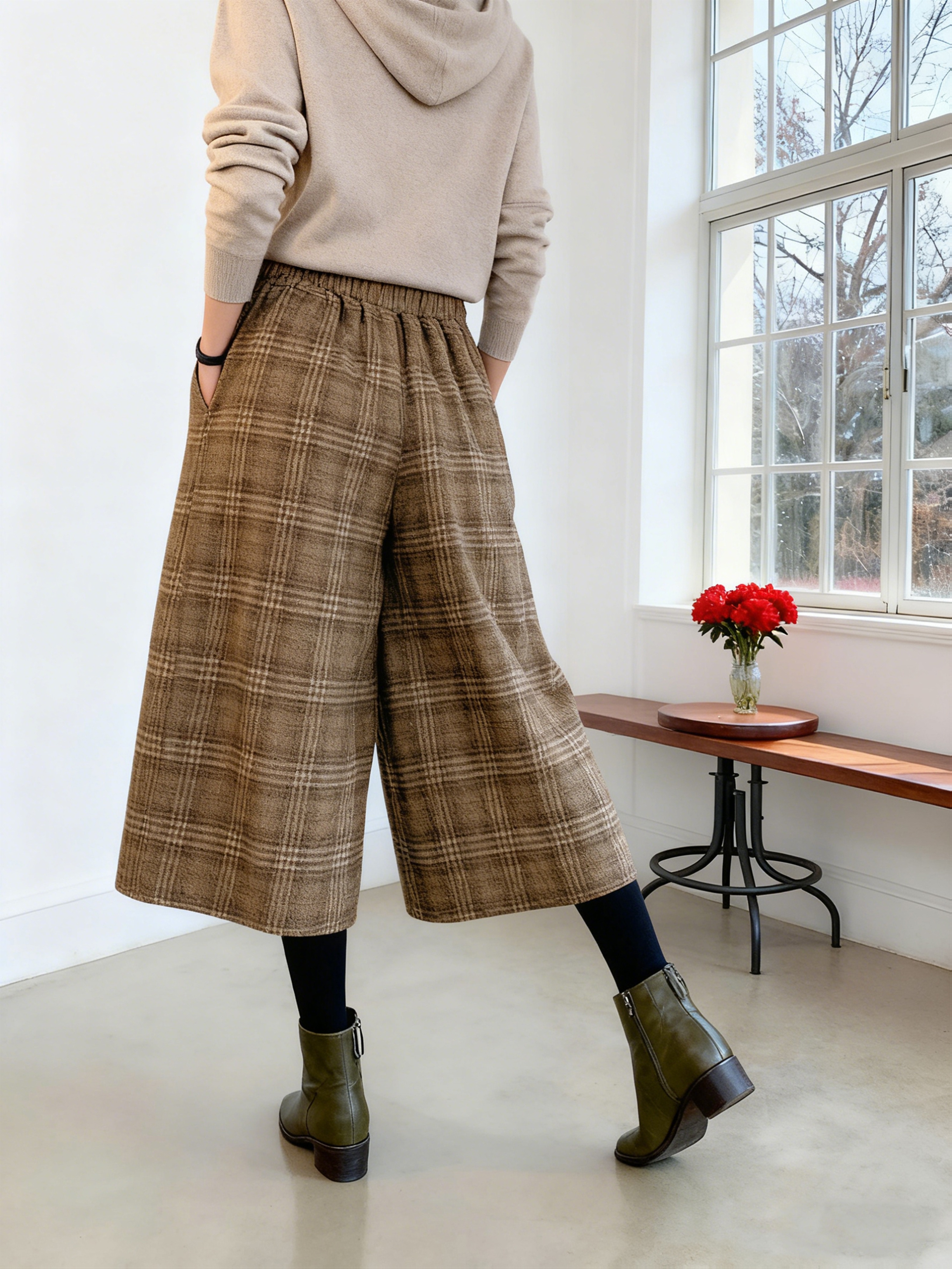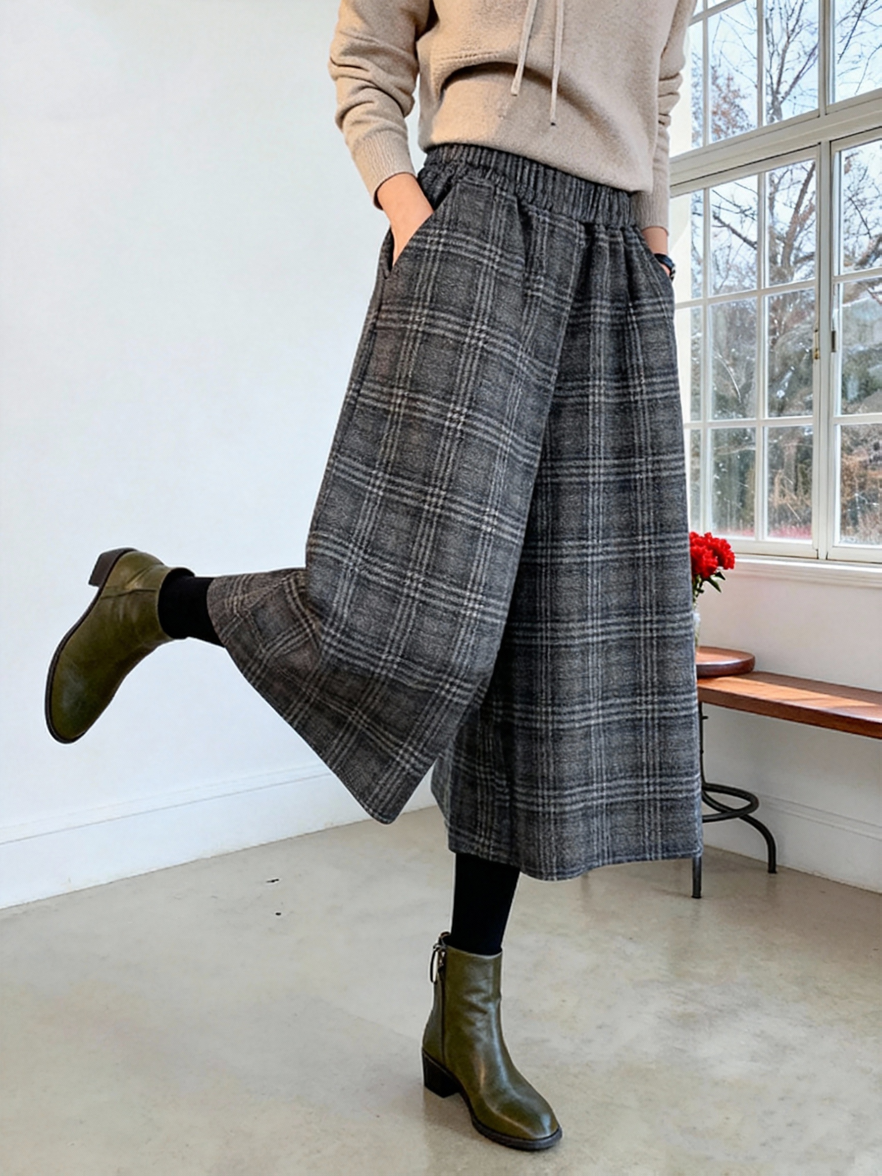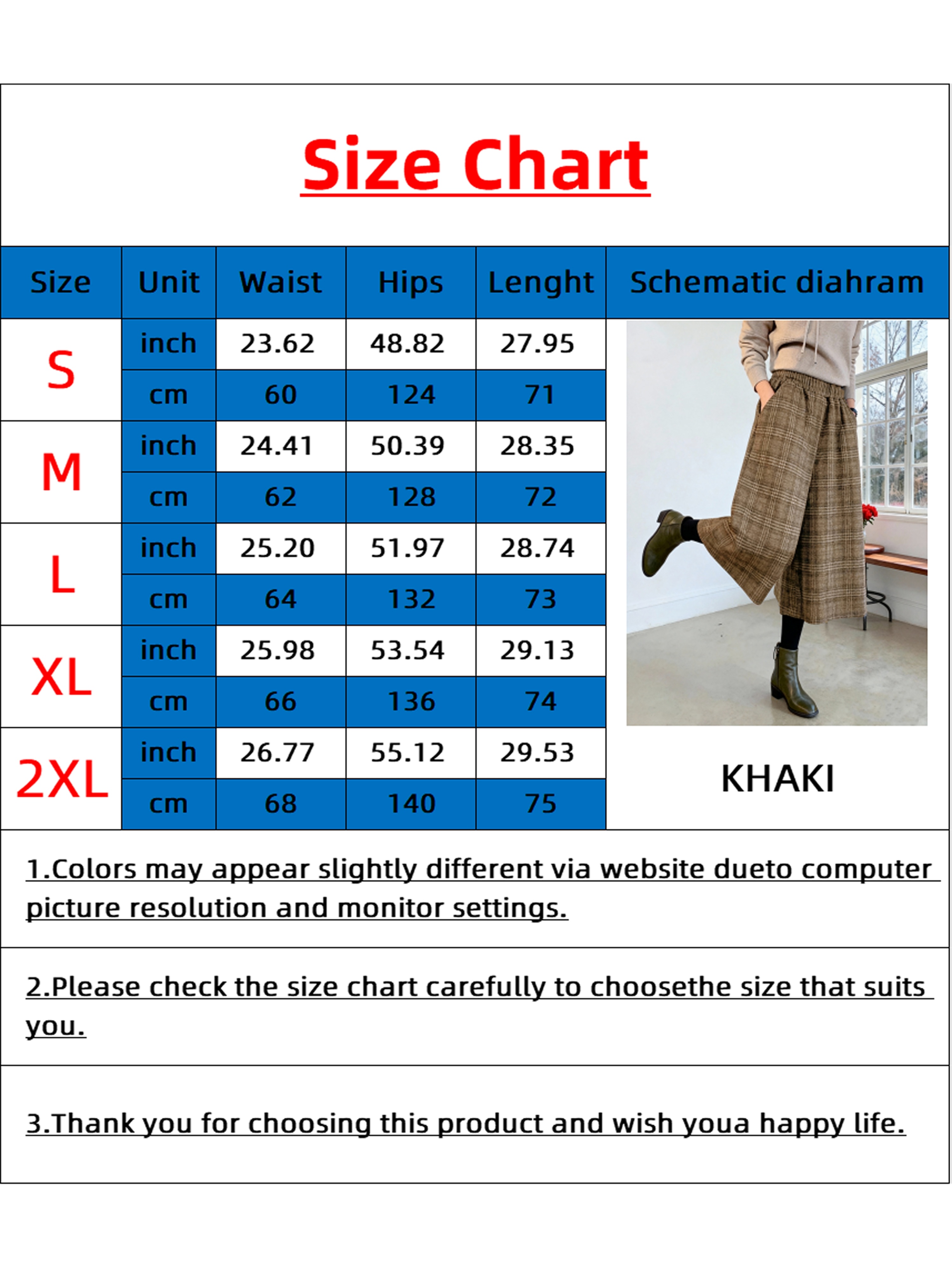 Women’s Winter Warm Wide-Leg Tweed Pants with Elastic Waist – Checkeredu002FPlaid (Suitable for both) – Loose-Fit Long Full-Length Trousers for Casual & Elegant Outfits, Horseback Riding, Country Wear – Machine Washable Pants