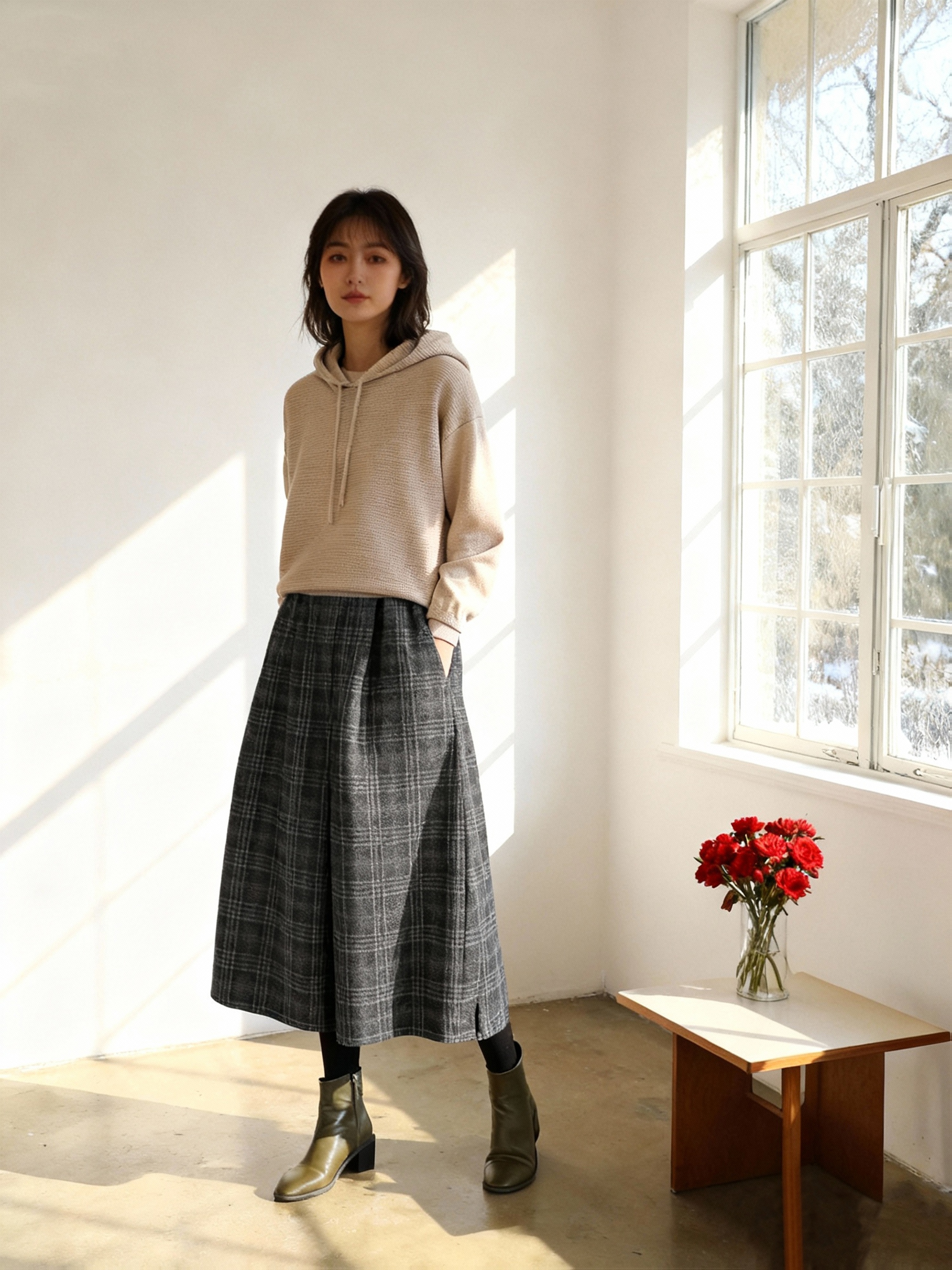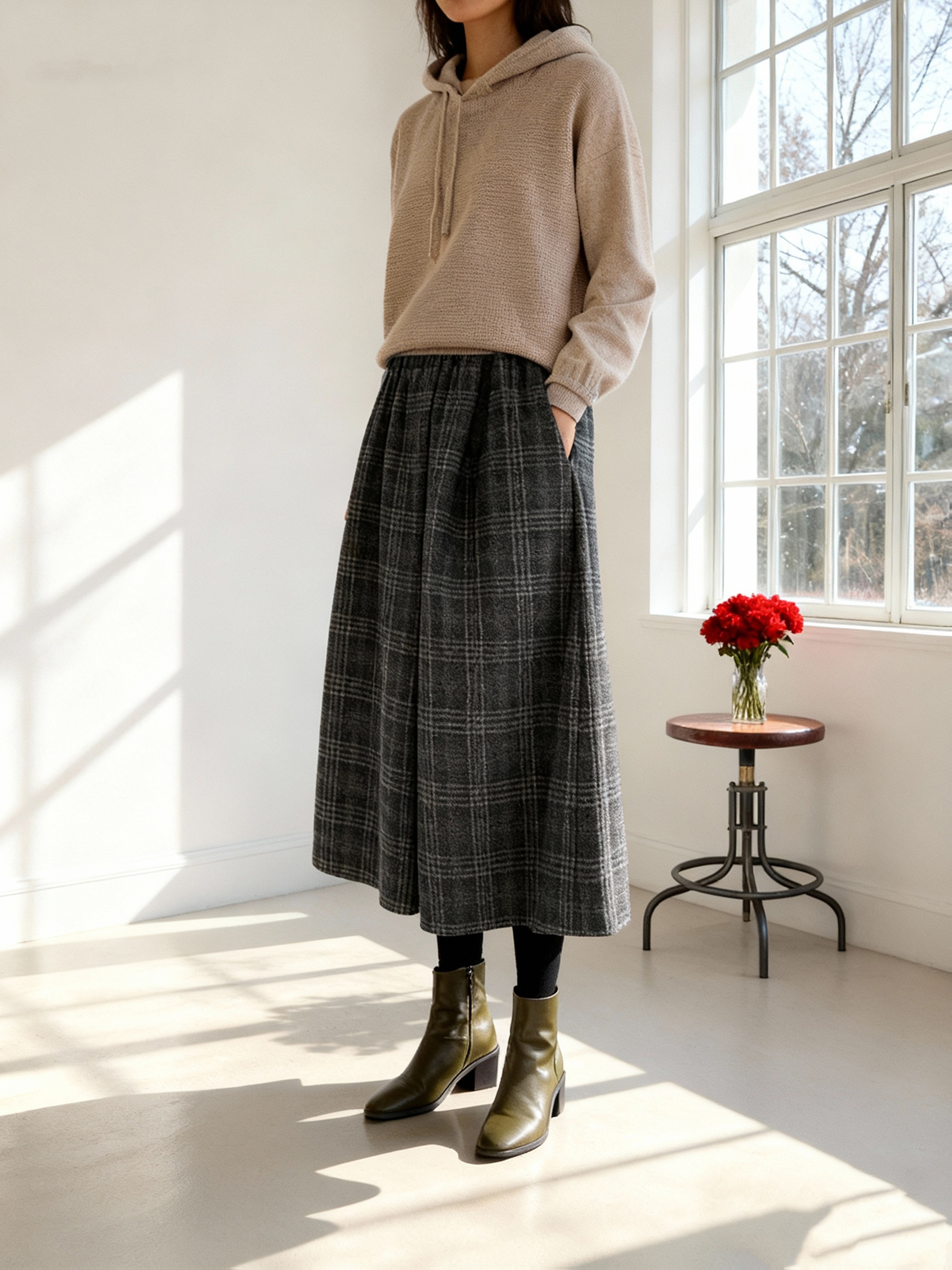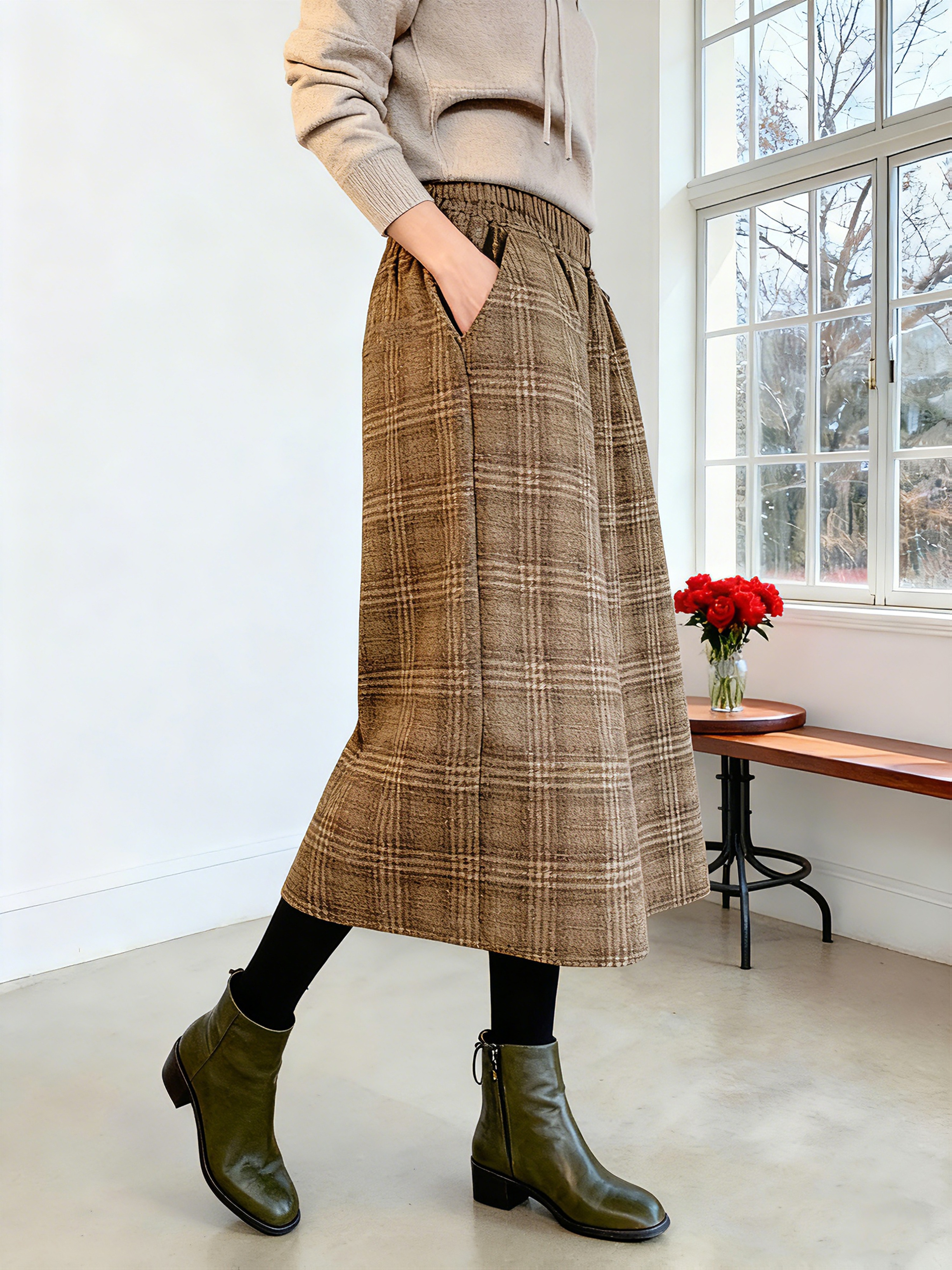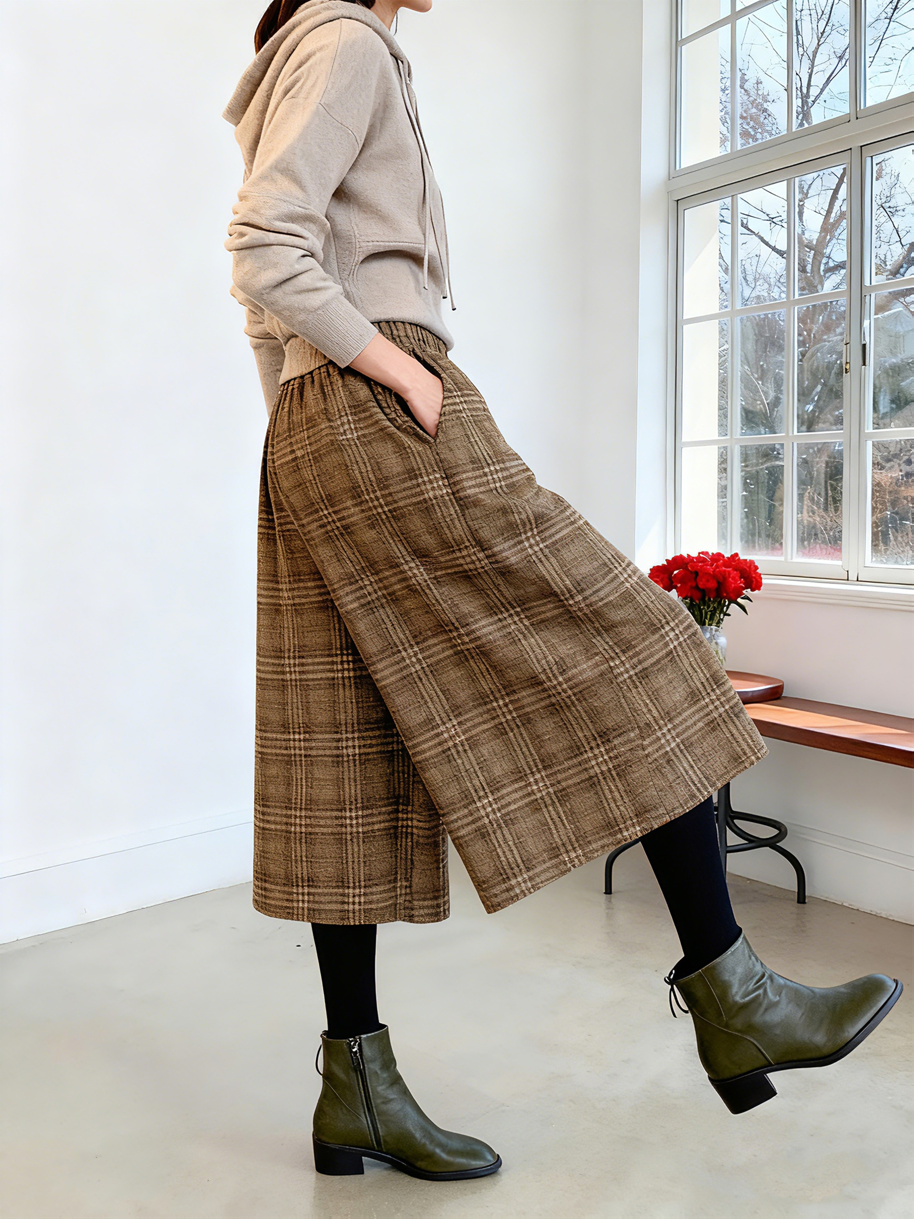 Women’s Winter Warm Wide-Leg Tweed Pants with Elastic Waist – Checkeredu002FPlaid (Suitable for both) – Loose-Fit Long Full-Length Trousers for Casual & Elegant Outfits, Horseback Riding, Country Wear – Machine Washable Pants